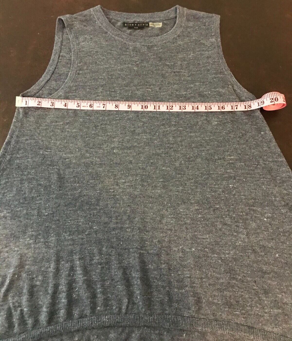 Alice+Olivia Base Jamika Linen Blue Denim Linen Blend Tank Size Medium Denim blue color Crew neckline Sleeveless Relaxed fit High-low style Fits true to size Dry clean only Pre-loved gentle condition See pictures for details and measurements (approx.) Comes from a dog-friendly and smoke-free home Welcome offers