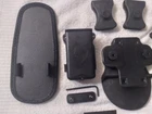 The Alien Gear Cloak Double Mag Double Stack Carrier is a universal magazine carrier made of lightweight and durable polymer material. It can be attached to your belt, inside waistband, or using a paddle. The carrier is designed for ambidextrous use and can accommodate two magazines. It features an adjustable cant and optional carry position for maximum comfort. The carrier is also water and weather resistant, multifunctional, and comes with a clip, pad, and paddle for secure attachment. It is made in the United States and is suitable for shooting sports.