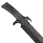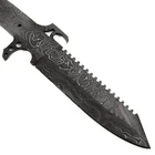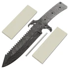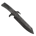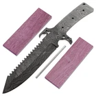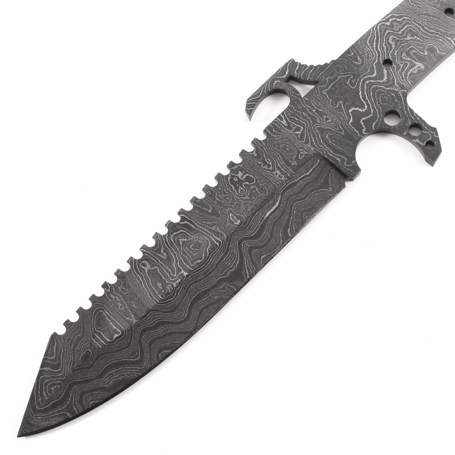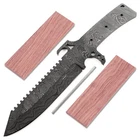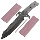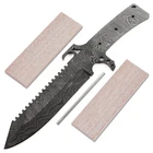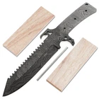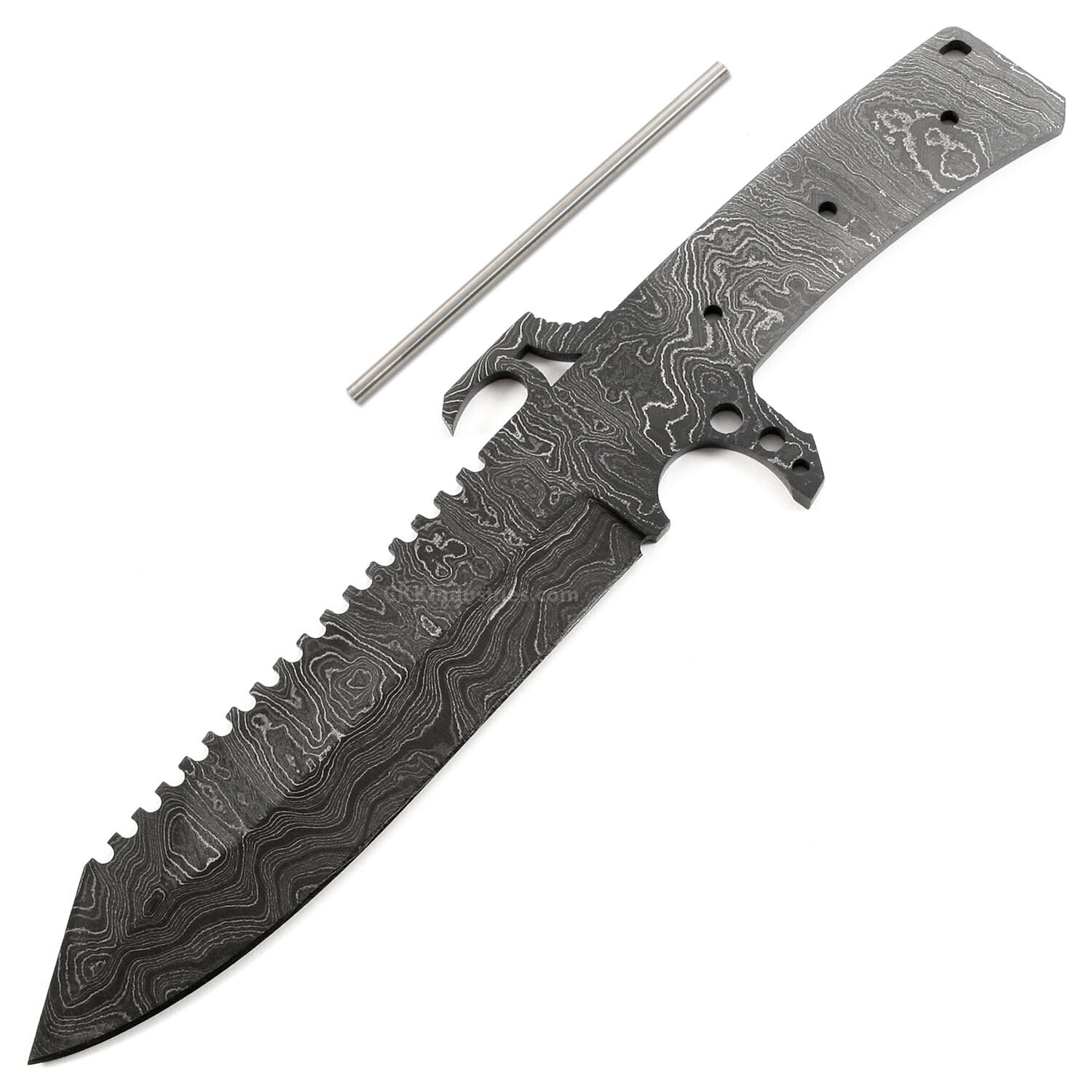 Damascus Knife Making Kit - Alien Hunter - (9 Handle Options) - DIY Blade Kit This full tang knife blank design is called the Alien Hunter knife kit. It is a USA Made carbon steel damascus fixed blade knife kit that is hollow-ground and ready to build. This model is a really cool design and will make a fantastic damascus knife. It has lots of potential for handle work and finish customization. The Alien Hunter knife kit has a blade length of 5-5/8 inches and an overall length of 10-3/4 inches. Ground on both sides, the blade is 1-1/2" wide. This damascus knife blank design features (3) .125" through-holes for handle construction (pinstock included - stainless steel). The Alien Hunter's tang holes can be modified with ease to work with larger pinstock, or with threaded fasteners. Specifications Blade Length = 5-5/8" Overall Length = 10-3/4" Tang Holes (3) .125" Pinstock Included: Yes Heat Treated = Yes Hardness: 56-58 RC Handle Material Included: Yes (If Selected) USA Made Damascus Configuration 3 Layers 52100 4 Layers 5160 3 Layers 203E 3 Layers 15n20 Folded = 5 times Total Layers = 416 For more knife making kits, knife making supplies, and sheath making supplies, see "https://www.ebay.com/usr/ckkindustries"