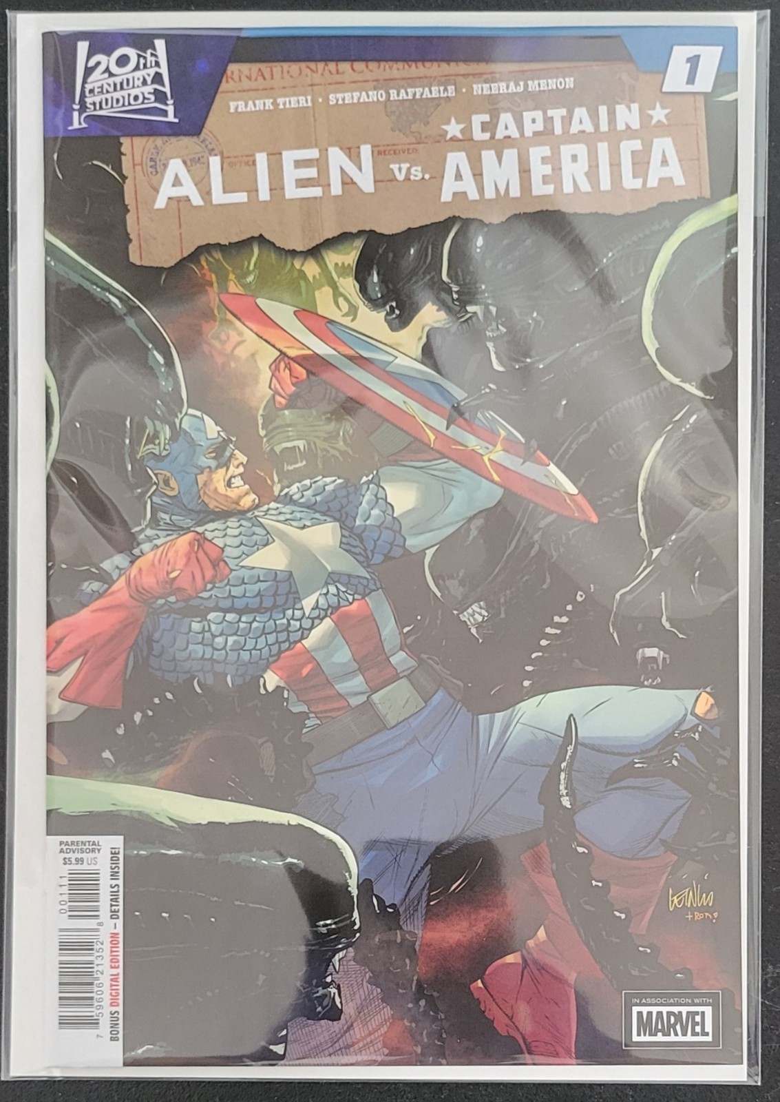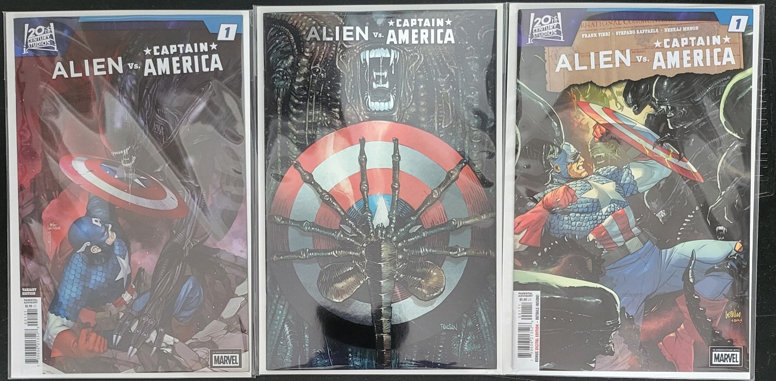 Alien Vs. Captain America #1, Lot of 4 Standard Covers, NM/Better Hello Shoppers, just a few things to point out about our listings. All listings are for full books and not covers only. Please feel free to make reasonable offers when the best offer is available on an item. We do combine shipping, and the best way to do that is to add all the items you are looking to buy to a cart and ask for an invoice, but if not, please just drop us a line. Generally, we look over the past sales to see if anyone was overcharged and send back the money overcharged, but we might miss it if you don't send a message. We also accept returns if any item arrives damaged. Please just contact us and let us know the situation before you leave feedback so we can try to rectify the situation amicably. We want to create a satisfying buying experience for both of us, which is why we do things the way we do. Lastly, please be reasonable in your dealings with us as we will always be reasonable with you. Our shipping time is longer, and we state it clearly in the listings 10 business days from payment because it takes us longer to pack your order up with the extras and ship the way we do, which is the main reason most of you say is why you want to buy from us. We look forward to helping you with your collecting experience. All the best. Please save us as a favorite and check back often as new items go up weekly. Any questions, message us.