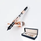 The All American Demo/Rosegold Limited Edition Fountain Pen with a Extra Fine Nib is a striking combination of bold design and refined craftsmanship. Established in 1898, has been at the forefront of the luxury pen industry, known for creating writing instruments that are both innovative and timeless. This limited edition pen features a transparent resin body paired with 18 Karat rose gold plated accents, offering a stunning visual contrast. The Extra Fine Nib, crafted by JoWo in Germany, provides broad, expressive strokes, perfect for calligraphy and artistic writing. The pen’s eyedropper filling system ensures a larger ink capacity, ideal for extended writing sessions. Packaged in a luxurious gift box, this pen is a perfect gift for professionals, collectors, and pen enthusiasts who value both style and substance. Heritage of Excellence: has been a trusted name in luxury writing instruments since 1898, known for its dedication to quality and innovation. A brand that represents tradition and modern design. German-Made JoWo Nib: Featuring a Extra Fine Nib crafted by JoWo in Germany, this pen delivers broad, expressive strokes, ideal for artistic writing. Perfect for those who enjoy adding a creative flair to their work. Eyedropper Filling System: This pen’s eyedropper filling system offers a larger ink capacity, making it suitable for long writing sessions without frequent refills. Designed for convenience and efficiency, ensuring fewer interruptions. Sophisticated Transparent Design with 18 Karat Rose Gold: The clear resin body paired with 18 Karat rose gold plated accents adds a touch of luxury and elegance. A visually stunning pen that combines modern design with classic sophistication. Perfect Gift: Presented in a luxurious gift box, this fountain pen is an ideal gift for professionals and collectors. A unique and thoughtful gift for those who appreciate fine writing instruments.