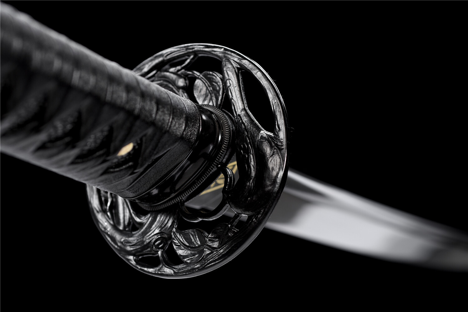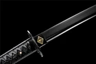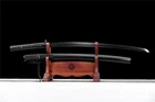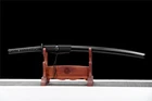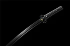 All Black Katana T10 Steel Japanese Samurai Functional Sharp Handmade Sword40'' Product Parameter: Material: T10 high carbon steel Overall: 103cm / 40.6" Handle: 26 cm / 10.24'' Blade: 70cm / 27.5'' Widdth: 3.2 cm / 1.26'' Thickness: 0.7cm / 0.28'' Blood groove: with bohi Fittings: Alloy Saya: Hardwood+unique sageo Blade: Black blade Construction: Maru Hardness(HRC): 56 Tang(nakago): Full tang (2 bamboo mekugi vertically fixed handle, very firm) Craft: Hand forged and polished with 10 procedures, quenching, electroplating color, etc. * It's a functinonal sword. After testing, you can use it to cut bamboo, paper and water bottles, etc. * Each handmade blade may have a slightly different color. The blade is a different color in different light. Each one is unique. * Packge: 1sword with saya+1bag Change accessories Additional Service Sword Noun Explananation About us Delivery details Change accessories Alloy Tsuba Iron Tsuba Brass Tsuba TSUBATSUKA-ITO & SAGEO Tsuka-ito is the wrapping of the tsuka and sageo (下緒 or 下げ緒) is a hanging cord that is passed through the hole in the kurigata (栗形) of a Japanese sword's saya. SAMEGAWA Samegawa(鮫皮)is the ray or shark skin wrapping of the tsuka (handle/hilt). SAYA The saya is a wooden scabbard for the blade; traditionally done in lacquered wood. Additional Service It is free for engraving English words,Chinese characters and Japanese Kanji. You need pay additional $20 for engraving patterns (dragon, lion, etc.) or other logos. Hamon We can add or remove the machine-made wavy hamon for free. Bo-hi ( Blood Groove) Usually thought be used for bloodletting only. It is also used to lighten the weight of the sword. We can add or remove Bo-hi for free Sharpness Most of our blades are sharp. We can also make the blade unsharpened for free if you require. Colored Blade If you want to change to a different color blade, please contact us before purchase. Matching Swords Set If you buy one katana, we can make a matching Wakizashi or Tanto for you. The price varies from different swords. Please contact us if you need make custom matching set. Sword Noun Explananation Quenching After the blade has been shaped, the sword would be quenched. We quench our swords in either water or oil. Water quenching produces a tougher edge which can also be hardened further more using clay. Blades quenched in oil are still considerably hardened and do have superior flexibility compared to a water quenched blade. Folded Steel : In the forging process , the most useful process is the folding, where the metals are forge welded, folded, and welded again, as many as 16 times. The folding removes impurities and helps even out the carbon content, while the alternating layers combine hardness with ductility to greatly enhance the toughness. The less impurities, the harder and sharper the blade will be. We have done cutting tests on the blades. it can cut bamboo(young bamboo tree), grass mattings and slice paper(The blade should be tilted at 45 degrees). Clay tempered : To maximize both the cutting edge and the resilience of the sword spine, a technique of differential heat-treatment is used. The sword is painted with layers of clay before heating, providing a thin layer or none at all on the edge of the sword, ensuring quick cooling to maximize the hardening for the edge. A thicker layer of clay is applied to the rest of the blade, causing slower cooling. This creates softer, more resilient steel, allowing the blade to absorb shock without breaking. About 1095 carbon steel : The best quality of high carbon steel is at 1095, the carbon content was 1.03%, and the element contains a small amount of chromium, molybdenum, vanadium, after heat treatment can reach HRc58-60 hardness, toughness is very good, but not resistant to rust, more be applied to traditional european-style hunting knife, large cutting knife and military dao. Such as the United States during world war ii "KA - BAR" saber is in 1095 as the blade material. Kobuse : The vast majority of modern katana and wakizashi are the maru type which is the most basic, with the entire sword being composed of a single steel. The kobuse type is made using two steels, which are called hagane (edge steel) and shingane (core steel). Steel of different materials is forged and welded together to hammer the basic shape of the sword. This allows the overall blade to have a higher toughness and absorb a lot of impact. Reducing the possibility of breaking or bending to some extent. Makes the blade not only has high hardness, but also has super toughness About us We have our own sword-casting factory. The factory is located in Longquan, a small town with a long history of sword-casting in China. Most of the famous Swords in China are made there. Rich raw materials, skilled technology, traditional sword casting technology from generation to generation. Real production process picture The traditional way of making sword by hand Delivery details a) Import duties, taxes and charges are not included in the item price or shipping charges. These charges are the buyer’s responsibility. b) Only paypal accepted. Paypal is convenient and safe for both of us. c) I f you have any problem after recieve the package (wrong size, wrong style, etc.). We always provide you with the best after-sales service. Please g ive us a chance to help you before you give us a bad feedback. Thank you very much!