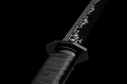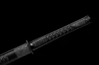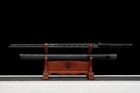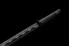 DESCRIPTION: Name: 二代斩月 Swordsmith: 吉久正一 After tests,professionals can use it to cut bamboo, paper, branch,or water bottles etc. It's a functional sword. Overall: 40.6''/103cm Blade: 27.5''/70cm Handle: 10.24''/26cm Width: 1.26''/3.2cm Thickness: 0.28''/0.7cm Bo-hi: No blood groove Material: 9260 Spring steel Saya: Wood saya + PU leather Fittings: Alloy Hardness(HRC): 56 Package: 1 sword + 1 bag Additional Service About us Sword Noun Explananation Delivery details Sword maintenance Additional Service It's free for engraving English words, Chinese Characters and Japanese Kanji , etc. You need pay extral $20-30 for engraving patterns. Sharpness Most of our blades are sharp. We can also make the blade unsharpened for free if you require. Matching Swords Set If you buy one katana, we can make a matching Wakizashi or Tanto for you. The price varies from different swords. Please contact us if you need make custom matching set. About us We have our own sword-casting factory. The factory is located in Longquan, a small town with a long history of sword-casting in China. Most of the famous Swords in China are made there. Rich raw materials, skilled technology, traditional sword casting technology from generation to generation. Manual production really takes a lot of time. We will prepare most products in advance ,and arrange delivery within about a week. However, sometimes the delivery time is delayed due to weather or raw materials,etc. we hope to get your understanding. Feel free to contact us to inquire about the status of your order. Each handmade sword is unique. Our swords are great for gifts or for your own collection. Our swordsmithing master makes every sword attentively, hope you can feel our sincerity. We will also give you the best customer service, any questions please feel free to contact us. Sword Noun Explananation Quenching After the blade has been shaped, the sword would be quenched. We quench our swords in either water or oil. Water quenching produces a tougher edge which can also be hardened further more using clay. Blades quenched in oil are still considerably hardened and do have superior flexibility compared to a water quenched blade. Folded Steel : In the forging process , the most useful process is the folding, where the metals are forge welded, folded, and welded again, as many as 124 times(15 times is the best). The folding removes impurities and helps even out the carbon content, while the alternating layers combine hardness with ductility to greatly enhance the toughness. The less impurities, the harder and sharper the blade will be. We have done cutting tests on the blades. it can cut bamboo(young bamboo tree), grass mattings and slice paper(The blade should be tilted at 45 degrees). Clay tempered : To maximize both the cutting edge and the resilience of the sword spine, a technique of differential heat-treatment is used.The sword is painted with layers of clay before heating, providing a thin layer or none at all on the edge of the sword, ensuring quick cooling to maximize the hardening for the edge.A thicker layer of clay is applied to the rest of the blade,causing slower cooling.This creates softer,more resilient steel, allowing the blade to absorb shock without breaking. About 1095 carbon steel : The best quality of high carbon steel is at 1095, the carbon content was 1.03%, and the element contains a small amount of chromium, molybdenum, vanadium, after heat treatment can reach HRc58-60 hardness, toughness is very good, but not resistant to rust, more be applied to traditional european-style hunting knife, large cutting knife and military dao. Such as the United States during world war ii "KA - BAR" saber is in 1095 as the blade material. Kobuse : The vast majority of modern katana and wakizashi are the maru type which is the most basic, with the entire sword being composed of a single steel. The kobuse type is made using two steels, which are called hagane (edge steel) and shingane (core steel). Steel of different materials is forged and welded together to hammer the basic shape of the sword. This allows the overall blade to have a higher toughness and absorb a lot of impact. Reducing the possibility of breaking or bending to some extent. Makes the blade not only has high hardness, but also has super toughness Delivery details a) Import duties, taxes and charges are not included in the item price or shipping charges . These charges are the buyer’s responsibility. b) If you do not receive the package, or the package is damaged during transportation. We'll take care of it. Please feel free to buy. c) If it is mentioned in the product description that the package includes the sword bag or sword holder , the style will be random. The sword holder or sword bag on the ebay picture is the props we use for shooting. If you really like a style, please contact us before buying. d) If you have any problem after recieve the package (wrong size, wrong style, etc.). We always provide you with the best after-sales service. Please give us a chance to help you before you give us a bad feedback . Thank you very much! Sword maintenance