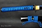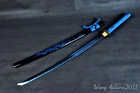 All Blue Sharp Sword 1095 Steel Battle Ready Japanese Samurai Functional Katana Product Parameter: Sword style: Japanese samurai katana sword Blade material: 1095 high carbon steel Overall length: 103cm / 40.6" Handle: 26 cm / 10.24'' Blade: 70cm / 27.5'' Width: 3.2 cm / 1.26'' Thickness: 0.7cm / 0.28'' Hardness(HRC): 58 Blood groove: with bo-hi Hamon: with wavy hamon Tang(nakago): Full tang (2 bamboo mekugis vertically fixed handle,very firm) Construction: Maru Seppa & Habaki: Brass Fittings: Alloy Saya/ Scabbard: Lacqured hardwood, blue dragon image engraved Sharpness: sharp enough to cut bamboo, branches, water bottles, etc. * Handmade sword. Crafted with the utmost skill and care, this sword has been water-hardened and hand-polished, and finally eletroplated with blue color on the blade surface. The blade is not prone to rust. The dragon design on the wooden sheath is hand carved, not lacquer painted on the sheath. Very delicate. * The steel we use is not the normal steel with the truck or cars or other life electrics, the steel use for the blade contents much more carbon and the purity can not be comparable. * It's a battle ready functinonal and sharpened sword. After test, the sword can cut bamboo, paper and water bottles, etc. * Packge: 1sword with saya + 1bag Note About us Sword Noun Explananation Delivery details Sword maintenance Note 1) We have already sent this item to the warehouse in America in advance. It's the lowest price we've ever had, and it's the lowest price on eBay . American customers can receive the packages 1-7 days after placing an order. 2) Because the item is already in the warehouse in the United States, we are sorry that we cannot add free carving service & replacement parts service for the moment. 3) We have free return service. If you don't like anything after you receive the package, we will bear the loss of return. Please feel free to buy. About us We have our own sword-casting factory. The factory is located in Longquan, a small town with a long history of sword-casting in China. Most of the famous Swords in China are made there. Rich raw materials, skilled technology, traditional sword casting technology from generation to generation. Manual production really takes a lot of time. We will prepare most products in advance,and arrange delivery within about a week. However, sometimes the delivery time is delayed due to weather or raw materials,etc. we hope to get your understanding. Feel free to contact us to inquire about the status of your order. Each handmade sword is unique. Our swords are great for gifts or for your own collection. Our swordsmithing master makes every sword attentively, hope you can feel our sincerity. We will also give you the best customer service, any questions please feel free to contact us. Sword Noun Explananation Quenching After the blade has been shaped, the sword would be quenched. We quench our swords in either water or oil. Water quenching produces a tougher edge which can also be hardened further more using clay. Blades quenched in oil are still considerably hardened and do have superior flexibility compared to a water quenched blade. Folded Steel: In the forging process , the most useful process is the folding, where the metals are forge welded, folded, and welded again, as many as 124 times(15 times is the best). The folding removes impurities and helps even out the carbon content, while the alternating layers combine hardness with ductility to greatly enhance the toughness. The less impurities, the harder and sharper the blade will be. We have done cutting tests on the blades. it can cut bamboo(young bamboo tree), grass mattings and slice paper(The blade should be tilted at 45 degrees). Clay tempered: To maximize both the cutting edge and the resilience of the sword spine, a technique of differential heat-treatment is used.The sword is painted with layers of clay before heating, providing a thin layer or none at all on the edge of the sword, ensuring quick cooling to maximize the hardening for the edge.A thicker layer of clay is applied to the rest of the blade,causing slower cooling.This creates softer,more resilient steel, allowing the blade to absorb shock without breaking. About 1095 carbon steel: The best quality of high carbon steel is at 1095, the carbon content was 1.03%, and the element contains a small amount of chromium, molybdenum, vanadium, after heat treatment can reach HRc58-60 hardness, toughness is very good, but not resistant to rust, more be applied to traditional european-style hunting knife, large cutting knife and military dao. Such as the United States during world war ii "KA - BAR" saber is in 1095 as the blade material. Kobuse: The vast majority of modern katana and wakizashi are the maru type which is the most basic, with the entire sword being composed of a single steel. The kobuse type is made using two steels, which are called hagane (edge steel) and shingane (core steel). Steel of different materials is forged and welded together to hammer the basic shape of the sword. This allows the overall blade to have a higher toughness and absorb a lot of impact. Reducing the possibility of breaking or bending to some extent. Makes the blade not only has high hardness, but also has super toughness Delivery details a) If you do not receive the package, or the package is damaged during transportation. We'll take care of it. Please feel free to buy. b) If it is mentioned in the product description that the package includes the sword bag or sword holder, the style will be random. The sword holder or sword bag on the ebay picture is the props we use for shooting. If you really like a style, please contact us before buying. c) If you have any problem after recieve the package (wrong size, wrong style, etc.). We always provide you with the best after-sales service. Please give us a chance to help you before you give us a bad feedback . Thank you very much! Sword maintenance