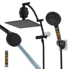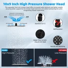 Rainfall 10x9'' Shower Head: Crafted from certified SUS 304 stainless steel, the large all-metal shower head body ensures rust resistance, durability, and long service life. Its ultra-thin design and air-in technology deliver a luxurious rain spray through 110 splash jets. The upgraded 10x9'' shower head delivers higher water pressure, while being lighter in weight, providing better support for the shower arm extension; while maintaining the same refreshing showering experience Filtered 10 Spray Settings & Purify the Water: The high-pressure handheld shower head is designed with a multi-stage powerful filter and replaceable filter cartridges. With 10 settings, it offers a diverse shower experience, including a wide fan mode for efficiently cleaning large areas. This shower head is an excellent tool for cleaning tubs, tiles, and pets. Enjoy the benefits of purified water, leaving you feeling rejuvenated and revitalized after each shower Innovative 20 Stages Shower Head Filter: advanced shower filter with 20-stage water filtration, redox media, calcium sulfite, activated carbon, and ceramic beads provides the ultimate water purification. It effectively eliminates odours, balances pH levels, and infuses beneficial minerals into your skin, nails, and hair from the moment you start using it! This filter also acts as a moisturizer and purifier, while providing an unparalleled sensation for sensitive skin Upgraded 16'' Shower Extension Arm: Height & angle adjustable arc-shaped design enhances its bearing capacity, high rise your shower head to achieve vertical water. Compared with the regular shower arm extender, the shower arm extension can raise the shower head higher or lower and keep the shower head in a horizontal position all the way. The shower head is always vertical in your large size and will not hit the shower arm, instead of sloping water like an ordinary straight shower arm Upgraded 3-Way Diverter Valve & Easy Installation: This shower head combo is very easy to install without tools or plumbers. The 3-way diverter can be used with a shower head/rainfall shower head alone, or with two showers at the same time. Our 3-way diverter and shower extension arm are designed to be connected without leaking and shaking, while an ordinary 3-way diverter is separated from the extension arm, and it needs to be installed and connected, which will lead to a leak and shake