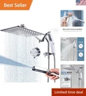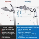 All Metal 12 Inches Rain Shower Head with Handheld Built-in Power Wash Mode, 3-way Diverter with Pause Setting, 11 Inches Adjustable Extension Arm with Lock Joint, Long Hose Chrome 【All-metal 12-inch rain shower】Made entirely of stainless steel for durability in wet conditions, this rain shower boasts pressurized nozzles that cover your entire body for a truly enjoyable bathing experience. The shower head combo weighs lbs 【Two modes of metal handheld】With durable metal construction and practical wash and spray settings, our handheld achieves a perfect balance of durability and functionality. The side switch allows you to switch between modes with just one hand 【Unique splitter design】Featuring a 11-inch extension arm and downward extension of the handheld bracket and switch, our unique splitter design makes it easy for people of different heights to adjust the switch and take out the handheld without having to raise their arms 【Four functions of the switch】Our clearly visible face-to-face switch design offers four functions to choose from: separate rain shower mode, separate hand-held mode, simultaneous water out of the mode, and pause mode. Pause mode allows people to keep the same temperature and switch the water on and off through the manifold without having to readjust the temperature every time the switch is made 【EASY INSTALLATION】Everything needed for installation is enclosed in the package. No need to call a plumber. If you have any questions about this item, please feel free to contact me. We will get back to you as soon as possible
