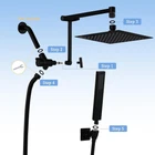 All Metal Material Sturdy Durable | Rainfall shower head and handheld shower head made of All Metal material, anti-corrosion and anti-rust. Compared to plastic materials, it is more sturdy and durable, even if used for a long time, it is not easily damaged. 4 Water Outlet Modes Switched At Any Time | Brass 4-way diverter allows you to easily switch between a rain shower head and a handheld shower head at any time, turn on both at the same time or turn off the water. Feel Free To Adjust Your Shower Space | Adjustable extension shower arm keeps the shower head away from the wall, Folding design, can adjust different heights and angles according to your needs. Meet different shower needs, fully enjoy the shower. 360° Shower Holder Comfortable Bathing | All metal anti slip handheld shower wand, designed in accordance with artificial mechanics, comfortable to grip. Shower holder can be freely adjusted 360° to upgrade your bathing experience. Easy to install on any smooth surface, easy to take and place the handheld sprayer. Easy Installation | Only a wrench is needed to complete the installation, no other tools are required. Our included instructions and installation video will clearly guide you through the installation. If you have any installation or other questions, feel free to contact us to answer them for you.