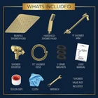All Metal Shower Head 8" Dual Square Shower Head With Handheld Wand 71in Hose Set, High Pressure Rain Shower Heads Combo, 3-Way Diverter Rainfall Showerhead with Adjustable Extension Arm Product information Technical Details Brand Heatsistence Style 2.5 GPM Shape Square Material Brass, Metal Finish Type Polished Setting Type Rain Installation Type Wall Mounted Color Polished Brass Product Dimensions 8"L x 8"W Hose Length 71 Inches Number of settings 3 Number of Jets 2 Efficiency 1.8 GPM, 2.5 GPM Special Feature Multi-mode showering, instant switching, easy-clean nozzles, adjustable rainfall UPC 601968428358 Manufacturer Heatsistence Part Number MSC-8 Item Weight 5.59 pounds Item model number MSC-8 Size 8 Inches, 2.5 GPM Finish Polished Flow Rate 2.5 Gallons Per Minute Special Features Multi-mode showering, instant switching, easy-clean nozzles, adjustable rainfall Batteries Included? No Batteries Required? No All Metal Shower Head Set: The package includes 1* rain shower head, 1* handheld shower, 9.5" shower extension arm & 70-75" flexible shower hose that allows for thorough cleaning of all sizes of bodies. Shower Head 3 Modes: Use a luxurious rain shower for drenching rainfall, hand, and dual shower mode with an included 3-way shower diverter that allows you to instantly switch. Shower Heads Nozzles: The shower nozzle is made of silicone, which allows them to be easily brushed and cleaned in case of mineral buildups from hard water. Adjustable Shower Heads: A swivel connector on shower head rainfall allows for 360-degree rotation and the angle can be adjusted as desired to meet the bath preferences of different people. High Flow Shower Head: The rainfall shower head has an optimal water flow rate of 1.8GPM and 2.5GPM, which can provide you with a more comfortable showering experience. Shipping We offer FREE shipping on all orders! We ship within Three business days of payment, usually sooner. We use a selection of shipping services such as UPS, FedEx, USPS etc. We only ship to the lower 48 states, no APO/FPO addresses or PO Boxes allowed. Local pickups and combined shipping options are not provided at this time. Return You can return a product for up to 30 days from the date you purchased it. Any product you return must be in the same condition you received it and in the original packaging. Please keep the receipt. Payment We accept payment by any of the following methods: PayPal Please pay as soon as possible after winning an auction, as that will allow us to post your item to you sooner! Feedback Customer satisfaction is very important to us. If you have any problem with your order, please contact us and we will do our best to make you satisfied. Contact Us If you have any queries, please contact us via ebay. We usually respond within 24 hours on weekdays. Please visit our eBay store to check out other items for sale! Thank you for shopping at our store.