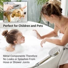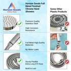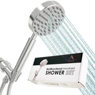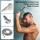 Struggle with water leaks or splashes from your shower? In a hurry but your water pressure is not enough? Too long to get the soap off your body or rinse your hair? With a focus on premium quality, our shower head with handheld high pressure has been finished to the highest standard and smoothness to ensure there are no water leaks or splashes and being made in full metal you don’t have to worry about its robustness and functionality. Our handheld shower heads are made in full metal, obviously much better than the usual plastic ABS “chrome” or other cheaper breakable materials. And with the special 2.5 GPM (gallons per minute) flow restrictor, you get just the right level of water pressure for your needs. If you wish even a higher water pressure simply remove the flow restrictor from the shower head. The flow restrictor is at the bottom of the handle of the shower head. The long 6 ft stainless steel shower hose allows freedom of movement. Our connection sizes are compatible with all homes in the USA and Canada. Shower head with handheld Polished Chrome set: Instruction manual Shower head 6 ft shower hose Shower articulated bracket 3 rubber washers (1 is spare) Teflon tape 2.5 GPM water restrictor Full Metal Shower Head in Polished Chrome - Our handheld shower head with a 6 feet long stainless steel shower hose is completely in metal, not the usual ABS plastic “chrome” or other cheap breakable materials. With our focus on metal’s premium quality you don’t have to worry about its robustness and functionality. Just enjoy your shower! No More Messy Water Leaks - With this sturdy and stylish all-metal shower head, whether you're showering for yourself, your kids or pets, you'll never see water leaks or splashes from the shower hose or joints. You will just experience a comfortable shower. Perfect Water Pressure - With the special adjustable 2.5 Gallons Per Minute flow restrictor our high pressure shower head with handheld has been finished to the higher standards to ensure a perfect and exact water pressure for a pleasant shower. Very Easy to Install - For a very easy mounting the set includes the instruction manual with drawings, a teflon tape, 3 rubber washers (1 is spare), the hand held shower head with hose, the articulated bracket and the removable 2.5 GPM flow restrictor (at the bottom of the handle) to have an even higher water pressure. Our connection sizes are compatible with all homes in the USA and Canada. Water Saving - Handheld showerhead set in polished chrome made of Japanese SUS304 stainless steel, with high quality silicone nozzles and a device to save water. Quality counts, and without any doubt this is a very high quality product. Buy yours now!