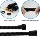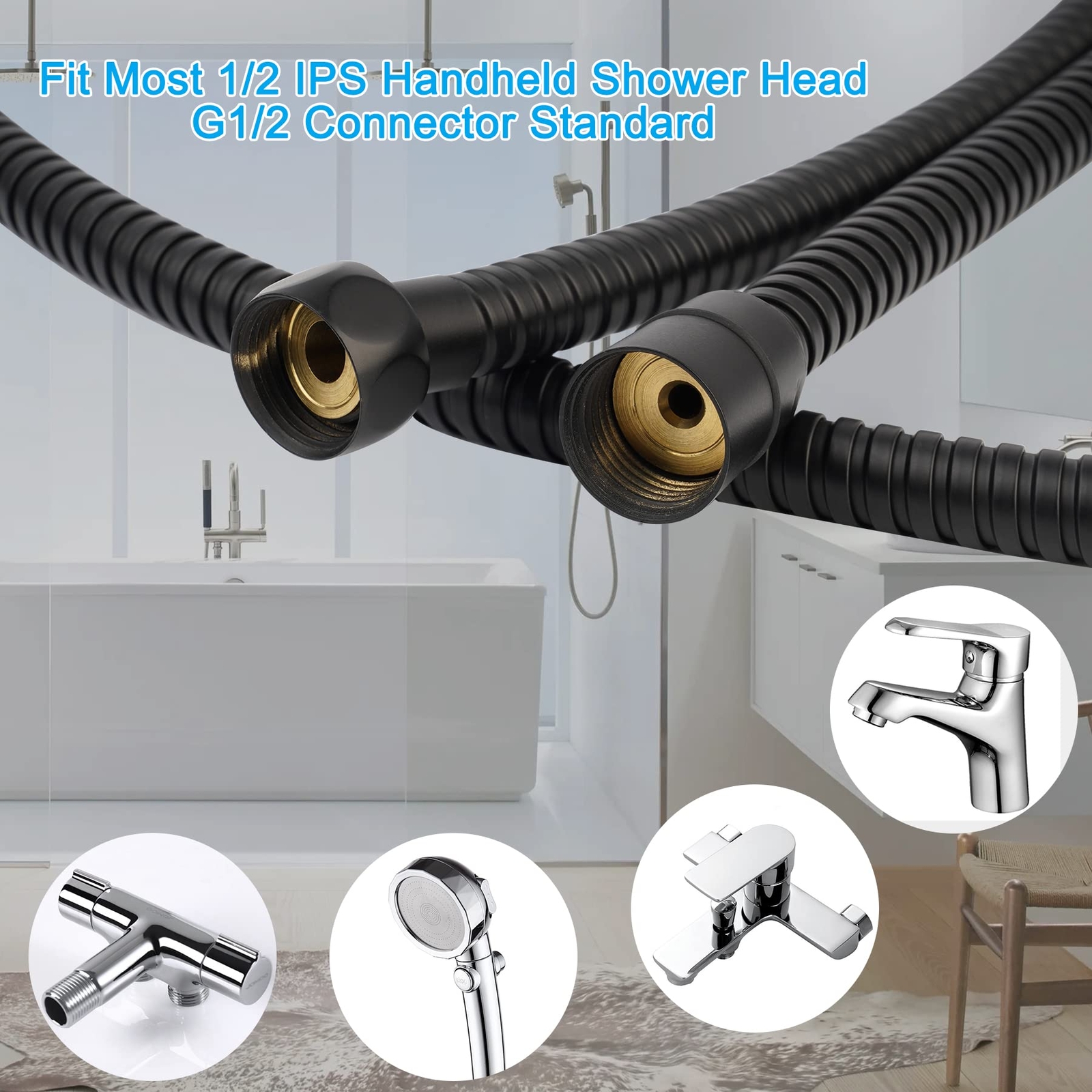 Stainless Steel Shower Hose: To ensure longevity, corrosion resistance, and rust resistance, this shower head hose is manufactured of high-quality stainless steel. Its oil rubbed bronze finish also inhibits corrosion EPDM Inner Tube: The inner pipe is constructed of odourless EPDM material that can withstand high temperatures and pressures Brass Connector: It is great for the majority of handheld shower heads and bidet sprayers that have standard 1/2" IPS ends. Solid brass connector comes with a brass insert and a brass nipple. Both sides fitting are 1/2'' straight threads Leak-Proof and Anti-Twist: This shower hose adapter has no kinking and is very flexible. The flexible shower hose and water pipe connection can be securely fastened together to stop water leaks due to the built-in waterproof washer Handheld Shower Hose: The 59-inch handheld shower hose is long. You can easily rinse anywhere or wash your child or pet. It's easy to reach target areas with the 59-inch shower head hose, making it ideal for cleaning