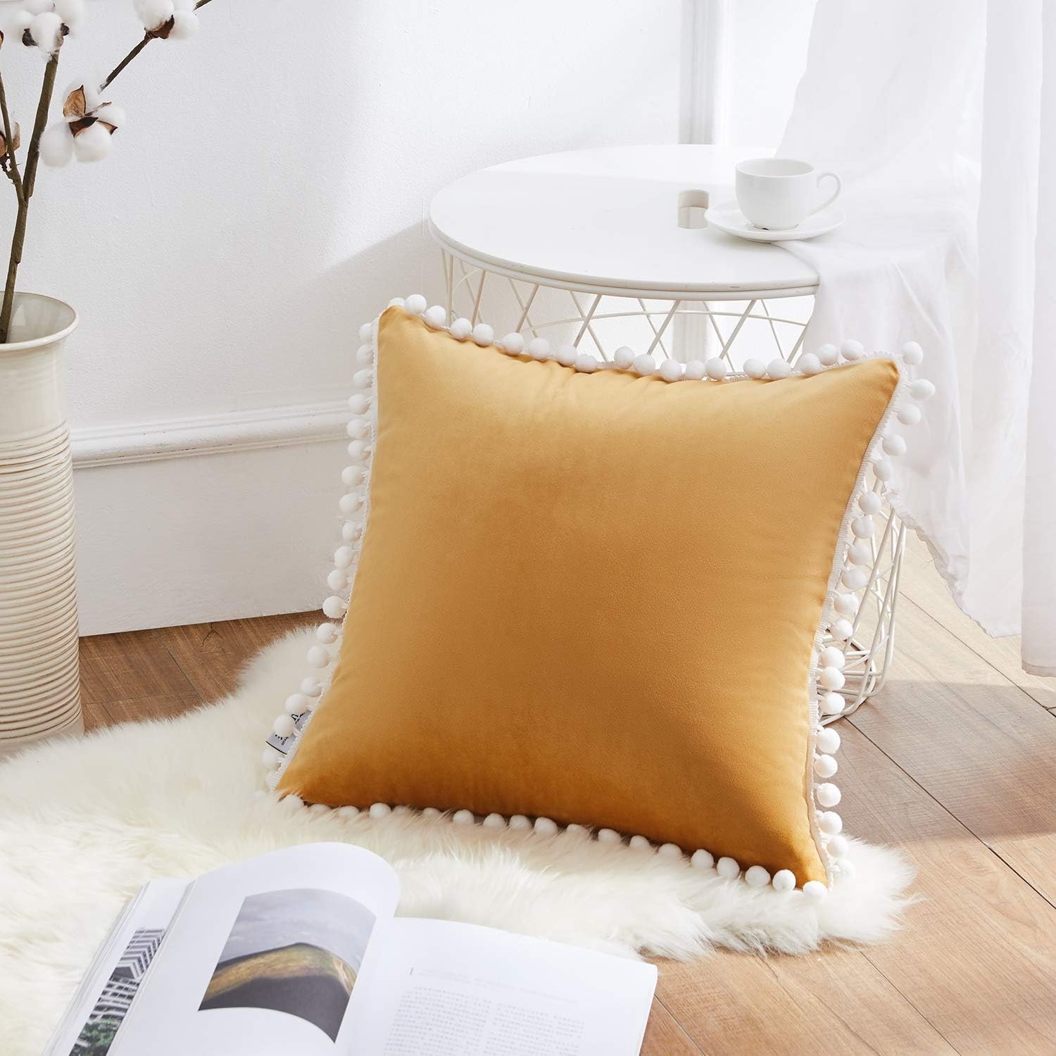 About this item Check if it's Outdoor or Indoor type, outdoor type is waterproof, indoor type is velvet Outdoor & Waterproof Material: Made of durable canvas polyester with PU coating, which is light, cozy as well as breathable, can effectively prevent water and blot from splashing. The material of water resistant and dust proof is available for outdoor applications in the garden or yard, or near the swimming pool. Various Functions: Suitable for spring decor, tent, car, bed, sofa, seat, couch, bench and other outdoor furniture. Good decorations for outdoor garden, patio, balcony, living room, bedroom, party, picnic, wedding, office, cafe, etc. Size: 2 pieces of 12x20/18x18/20x20 inch pillow covers without inserts. Color may be different in different light or on different screen. Hidden Zipper: The color of zipper is same to the color of pillow cover. And the zipper works smoothly that makes it easy to insert and remove of the pillow inserts. Washing Tips: Machine Wash Cold Separately, Gently Cycle Only, Dot Not Bleach, Tumble Dry, Do Not Iron and it'll look brand new . High-quality Hardware The pillow covers are equipped with a high-quality zipper at the slide side, easy to insert and remove the cushion pillowcases. CARE GUIDE Machine Washable Below 86°F Do Not Bleach Tumble dry at Low Temperatures Iron at Low Temperatures Professional Dry Cleaning Note: To protect the zipper, please zip up. Package: Pack of 2 APPLICATION 1 The couch pillow covers are an ideal decoration for a couch, sofa, chair, window seat, bed, car or living room, book store, coffee shop. The decorative pillow covers are great gifts for housewarming, birthdays, weddings, valentine or Christmas parties, etc. Indoor Velvet Types WESTERN HOME WH Velvet Cushion Cover 100% grade A velvet.Very soft, soft handle, comfortable, and elegant. 18 x 18 inch / 45 x 45 Cm. No pillow inserts(2pcs). The decorative throw pillows cover also make an ideal housewarming gift. Highly stretchy and hidden zipper closure makes this pillow covers easy insertion or removal of a cushion. Perfect to decorate your room in a simple and fashionable way. Suitable for living room, bedroom, sofa, couch, bed, car, seat, floor, bench, office. Material Super Soft:100% A Grade Velvet, fine texture, soft handle, comfortable and elegant. It has elasticity with good water absorption, no hair loss, no pilling. Kids and Pet Friendly:Because of using environmental and high-quality velvet fabric, these pillow covers are the great choice for homes with children and pets. Workmanship Design: Delicate invisible zipper closure is designed to meet an elegant look. Tight zigzag over-lock stitches avoid fraying and ripping. Durable: The great design keeps these cushion covers in good shape and makes them durable. Coexistence of beauty and practicality. Add Color To Life Decorative Pillow Covers You can change the look so easy for the different seasons/ holidays, this is also such a space saver by just switching covers on your pillows versus storing more pillows. Cute Pompom Design Pompom design, stylish and elegant. Each edge is securely sewed with exquisite pompom, eye-catching, and crafted, creating a cute look and have a nice day. Easy Care & Wash The correct way of washing can make our pillowcases look like new forever. It can be machine washed in cold water, without bleaching, low tumble dry, and iron-free.