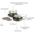 All-Clad Hard Anodized Nonstick Cookware Set, 12 piece Set About this item Our nonstick cookware set is great for beginner cooks and includes an 8.5 and 10.5 inch fry pan, 4 quart sauté pan with lid, 2.5 quart sauce pan with lid, 7 quart stockpot with lid and insert, 13 inch square pan, and two silicone trivets. Heavy gauge, hard anodized aluminum with even heat for cooking delicious meals. The high-quality PTFE nonstick provides long-lasting easy release for effortless clean-up. Engineered to stack and save space when storing without damaging the nonstick. The contoured, double riveted stainless steel handles provide a comfortable grip and the tempered glass lids are convenient for monitoring food while cooking. Oven safe up to 500°F and compatible with any stovetop excluding induction. Glass lids are oven safe up to 350°F. Dishwasher safe. To preserve the nonstick, wash your cookware with a soap and sponge, and use silicone, nylon or wooden utensils. Designed in Canonsburg, PA - USA, Made in China. Limited Lifetime Warranty. 1---Please feel free to contact us through eBay Message ifrou have question,such as tracking number,shipping statusct.. 2---Please DON'T GIVE NEGARTIVE or NEUTRAL REVIEW or OPEN ANY CASES before contact us through ebay inbox. 3---Sometimes we may send small gift for you,please keep it if you get some gift from us.And hope you like it. 4---To offer best service,sometimes we will update the status of your order,please check your ebay inbox time by time. Anyway,thanks so much,enjoy shopping.