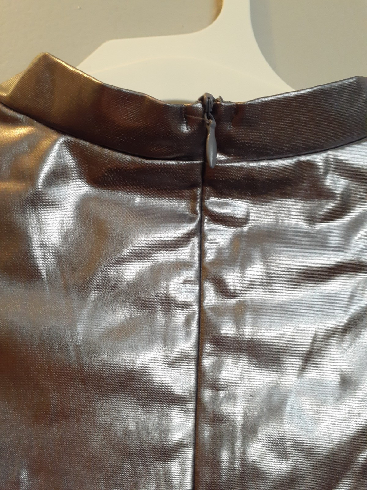 Smoke free home This Allegra K crop top is a shiny silver top in size M with a high neckline and short sleeves. It features a zip closure at the back for easy wear. The top is made of a blend of polyester and spandex, making it machine washable and a regular fit for a comfortable wear. Perfect for party or cocktail occasions, this cropped top adds a touch of metallic flair to any outfit with its modern and stylish design.