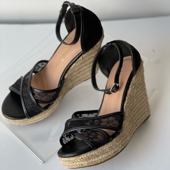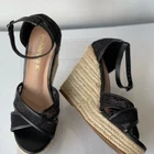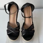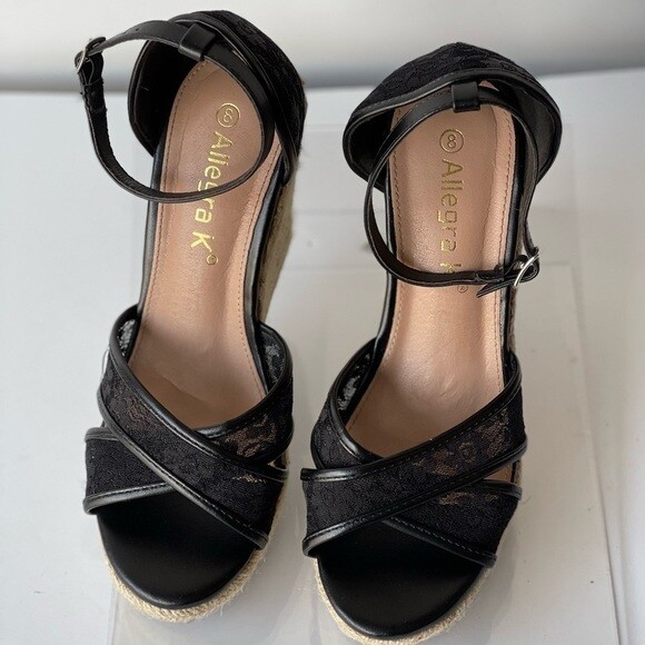 Allegra K Women's Strappy Black Wedge Sandal Platform Heels, Sz 8 - Pre-owned/Great Condition! - Cushioned Foootbed - 4" Platform Heels THANK YOU!