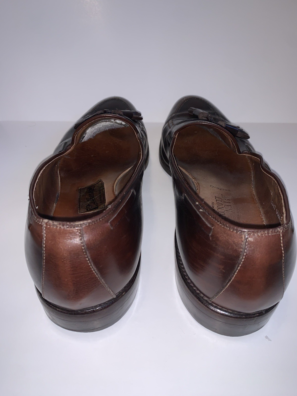 The Allen Edmonds Grayson Brown Leather Tassel Loafers are a stylish and high-quality pair of dress shoes made in the USA. These slip-on loafers feature a solid brown color with tasseled accents, perfect for adding a touch of sophistication to any formal outfit. Crafted with leather upper material and lining, these shoes are durable and comfortable for all-day wear. Ideal for men looking for a classic and American-made shoe option, these loafers are a great choice for summer, fall, and spring seasons.