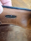 The Allen Edmonds RANDOLPH Brown Leather Penny Loafers Dress Shoes are premium quality men's shoes with a classic almond toe shape and slip-on closure. Made with genuine leather, these shoes feature a cushioned insole and leather lining for maximum comfort. The solid Chile brown color and solid design make them versatile for any season, while the EEE shoe width ensures a comfortable fit for those with broader feet. With a brand like Allen Edmonds and a reputation for excellence, these shoes are a stylish and practical choice for any dressy occasion. It appears that theae shoes have recently had new soles and heels added by Nu Shoes soles and GTO Italia heels. Beautiful job was done for long lasting comfort and wear...B2461