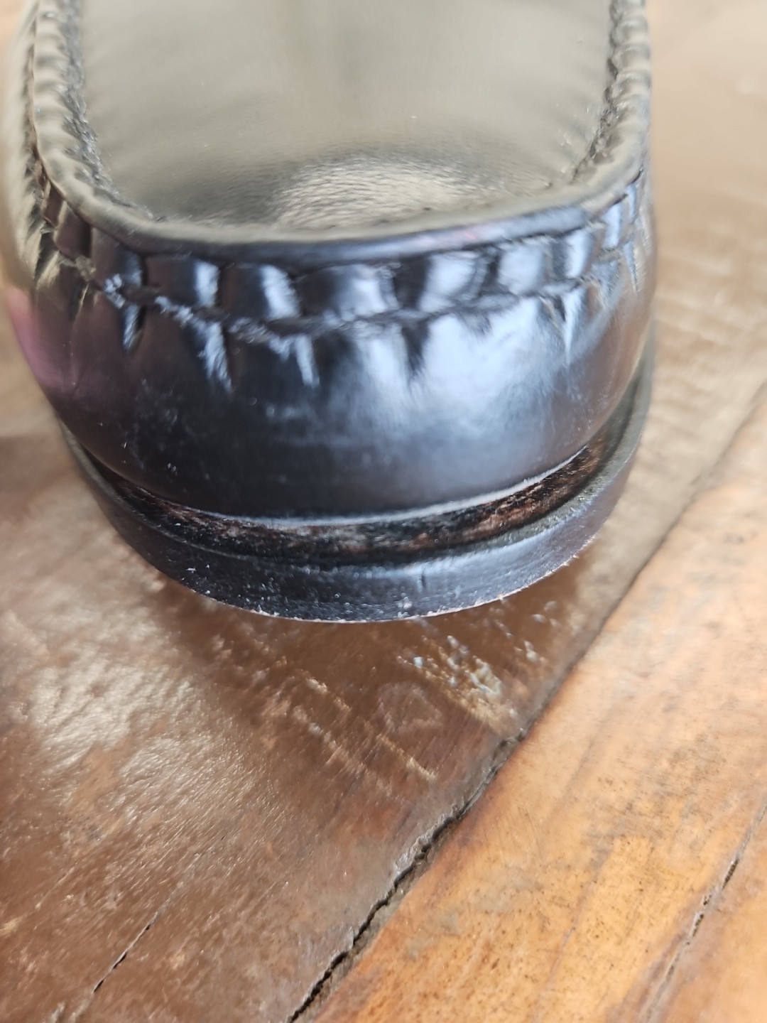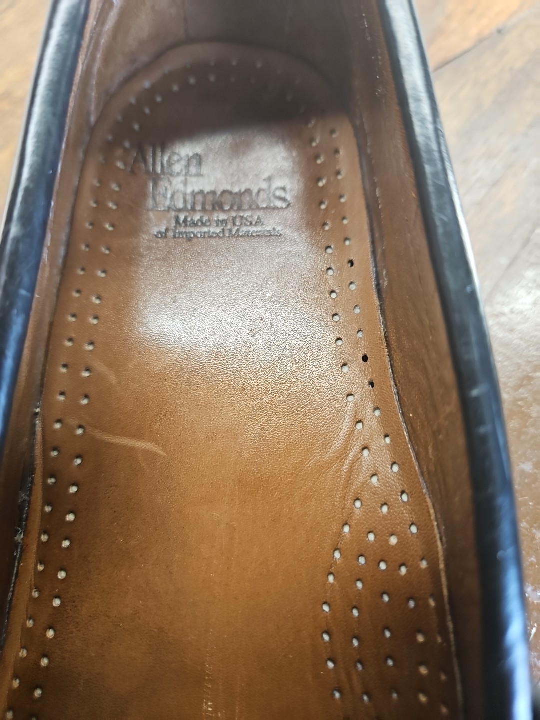 The Allen Edmonds Walden Penny Loafer in size 10.5 is a high-quality, classic dress shoe perfect for any season. Made in the USA with black leather, these slip-on loafers feature an almond toe shape, standard shoe width, and comfortable leather lining. The timeless style, Ivy character, and distinguished features make them a versatile and stylish choice for any gentleman looking for a quality pair of shoes. Beautiful shoes ..B2359