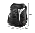 Alliance Backpack, Black/Black, 45 Liter Description Always be ready with the TYR Alliance backpack. The TYR Alliance bag is packed with state-of-the-art features engineered for athletes on the go. With a cutting-edge, space saving design, it maximizes storage without the bulk. In addition to contour shaped padding for ideal ergonomics and lumbar comfort, the new design also includes multiple front and side pockets, expandable mesh pockets for separating wet and dry items, spring hooks for wet suits, a mesh water bottle pocket, adjustable straps and a protective storage space for large electronics. The TYR Alliance is designed with fabric technology to ensure a lightweight feel and durable, water resistant construction. Available in 30 liter and 45 liter Features: TYR Alliance 45L Backpack Always-Be-Ready w/TYR Alliance 45L Backpack New Twist On-an-Old Classic State-of-the-Art Features Engineered for Athletes On-the-Go Cutting-Edge Space-Saving-Design Product Details: Product Dimensions: 10.63 x 13.39 x 20.08 inches Item Weight: 1.6 pounds Department: unisex-adult Manufacturer: TYR Country of Origin: China Item model number: LATBP45 Is Discontinued By Manufacturer: No Age Range Description: All Item Weight: 1.6 Pounds Number Of Items: 1 Units: 1 Count Capacity Total: 45 Liters Delivery We Do Not Ship Outside of the Continental US. Return Policy All items qualify for returns within 30 days of receipt. Buyer is responsible for return shipping on any item that is not damaged. Feedback We take our reputation seriously, we buy and sell online, so we understand the value of trust. If you are unsatisfied with your order, please contact us and we will work with you to resolve it to your satisfaction.