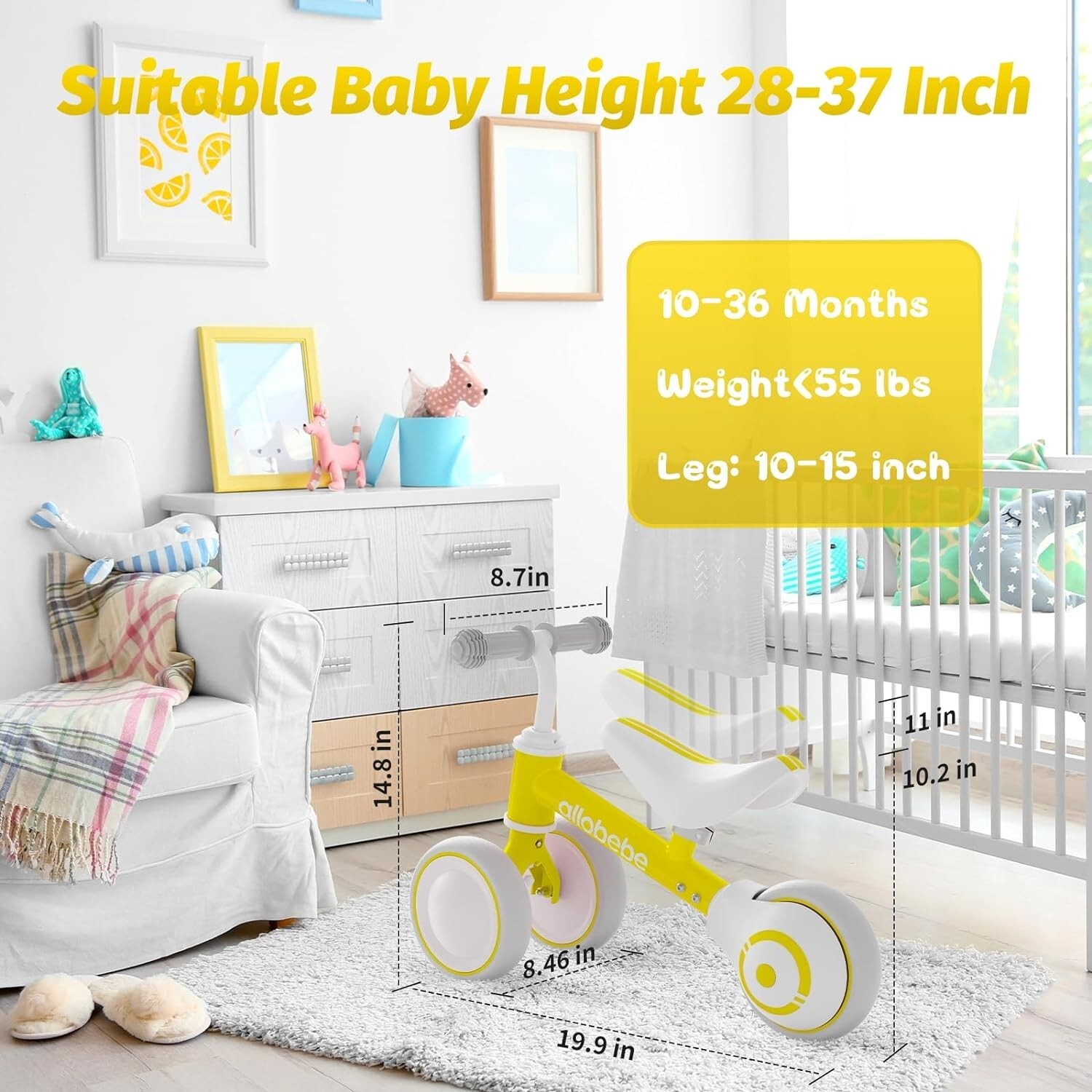 Crafted for your little one's learning and enjoyment, the allobebe Baby Balance Bike is a toddler-friendly bicycle designed for kids aged 1 and up. It features a sturdy, carbon-steel frame with a vibrant shining yellow finish that captures the imagination and stands up to playful rides. The bike's balanced design and rigid suspension ensure a smooth journey as your toddler masters the art of biking. With its 3-wheel configuration, this balance bike offers a wide base for stability, making it easy for your child to steer and confidence to grow as they navigate their surroundings. The regular size type fits well for those early biking adventures, creating cherished memories of your child's first cycling experiences. NEW OPEN BOX