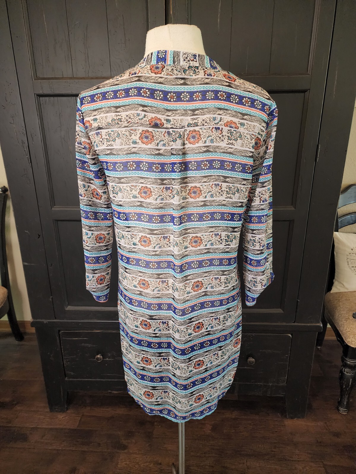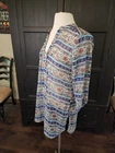 ❤️READ MEASUREMENTS FOR FIT ❤️ Almost Famous Peasant Tunic/Top Floral Roll Tab Sleeves Women's S Pre-owned. Very pretty long Peasant style tunic. 3/4 sleeves with roll tab. Lace-up front at V-Neck. Machine washable 100% Polyester fabric. Floral design in royal blue, turquoise, orange, and white. Boho, Peasant, Hippy Vibes. Laying flat top measures 19.5" from underarm to underarm, 14" from shoulder to shoulder, 29" from shoulder to hem, and sleeve measures 17" unrolled. ALL MEASUREMENTS ARE APPROXIMATE VERY good Pre-owned Condition. ❤️READ MEASUREMENTS FOR FIT ❤️