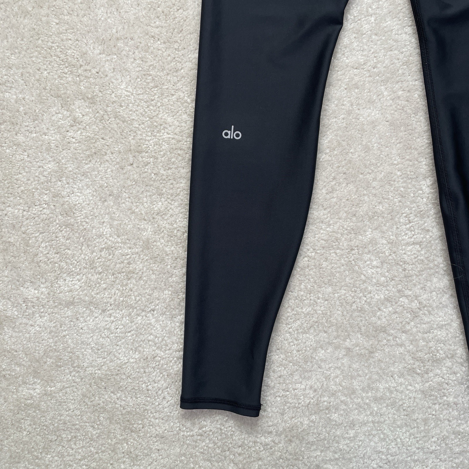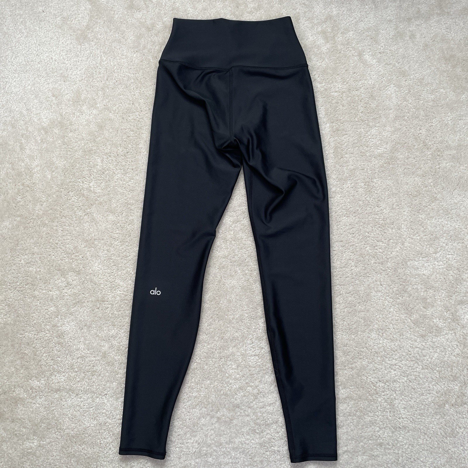 These Alo Leggings are a versatile and stylish option for active women in size Small. The black solid design adds a trendy touch to these yoga pants, while the skinny fit and athletic compression area make them perfect for yoga, running, and other athletic activities. The pull-on closure and stretch fabric ensure a comfortable and supportive fit, ideal for both casual wear and intense workouts. Perfect for all seasons, these leggings are a must-have for anyone looking for a blend of athleisure style and performance. *no care tag Please review photos for details, measurements and condition
