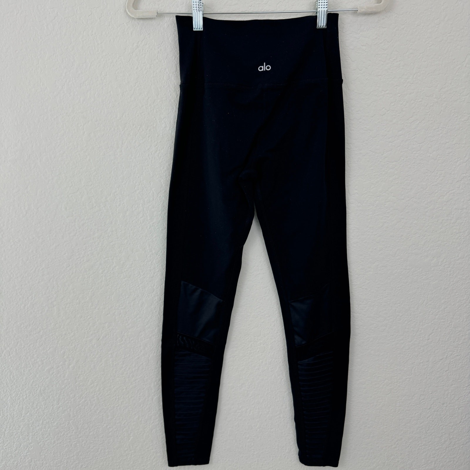 Brand: Alo Yoga Size: Size is pretty faded but these are an XS Measurements: Please see photos for approximate measurements. Condition: In good pre-loved condition. Some material wear and light pilling Color: Black Material: Nylon, spandex Features: High rise & hits at ankle Contouring mixed matte/shine fabric and forward mesh panels 4-Way stretch Moisture-wicking & odor resistant Tags: active, activewear, sportswear, train, athletic, gym, workout, fitness goals, athleisure, casual, yoga, pilates, outdoors, walking, running, cross train, cross fit Pre-owned clothing items are properly cleaned, washed, and/or steamed at high heat before listing.