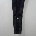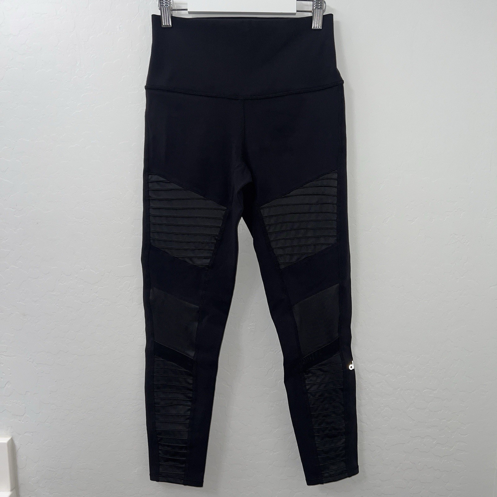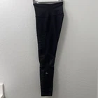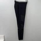 The Alo Yoga 7/8 High Waisted Moto Leggings in Black are a stylish and versatile option for women's activewear. Made with a blend of spandex and other materials, these leggings feature mesh panels for added breathability, an elastic waistband for comfort, and a pull-on closure for easy wear. With an athletic fit and a leg compression area, these leggings are perfect for yoga, other fitness activities, or casual wear in the spring, summer, or fall. The classic motorcycle theme adds a touch of edgy style to these ankle-length leggings that are machine washable and convenient for everyday use.