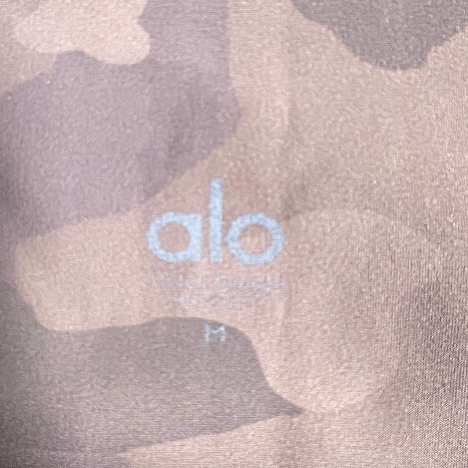Alo Yoga Vapor Leggings Brown Coco Camo Print Womens Medium High rise Allover camo print Four-way stretch fabric 73% Nylon / 23% Spandex Condition: Excellent pre-owned Size: Women's Medium Measurements (approximate, laying flat) Waist: 12" Inseam: 28.5"