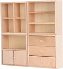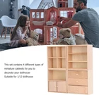 Alomejor 4 Pcs 1/12 Doll House Cabinet Set Simple Design Practical Lifelike Miniature Wooden Dollhouse Furniture Cabinet