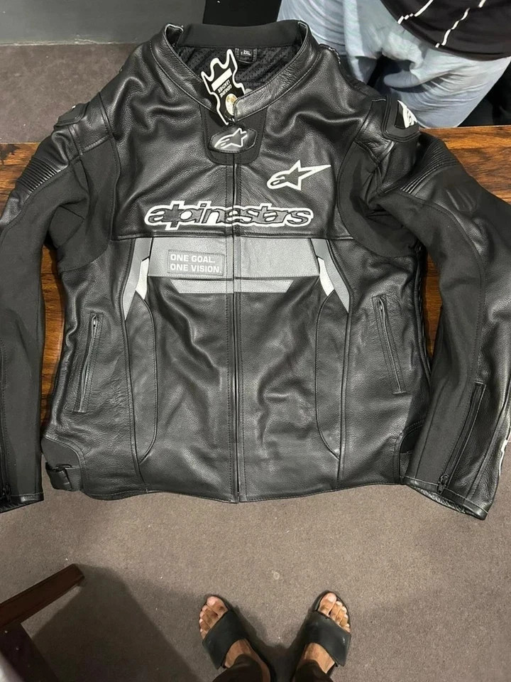 Outer Shell ITS A REPLICA This jacket is made from 1.2-1.3 mm thick drum-dyed top grain cowhide leather for excellent abrasion resistance Pre-curved sleeves for the proper riding position Original YKK zipper at front, cuffs CE approved external knee sliders Safety stitch Inner Shell Racing leather jacket have 100% polyester mesh lining CE approved removable protectors on shoulder, elbow CE approved removable back protector & hump Safety stitched