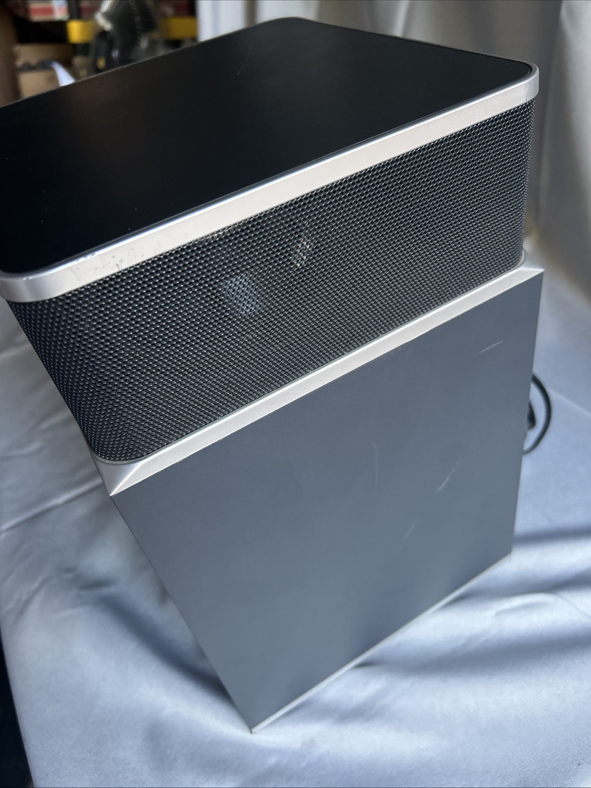 The Altec Lansing FX4021 Subwoofer is a black 2.1 channel stereo amplifier speaker designed for use with Altec Lansing FX4021 speakers. It features a 5.25" driver size, rectangular shape, and a compact noise-isolating design. The subwoofer offers Dolby Digital 5.1 and DTS 5.1 surround sound formats, 46W RMS power, and 4 Ohms impedance. With wired connectivity and audio inputs including stereo L/R RCA and 3.5mm jack, this subwoofer unit is perfect for enhancing your home audio experience with a sleek and powerful addition to your speaker system.
