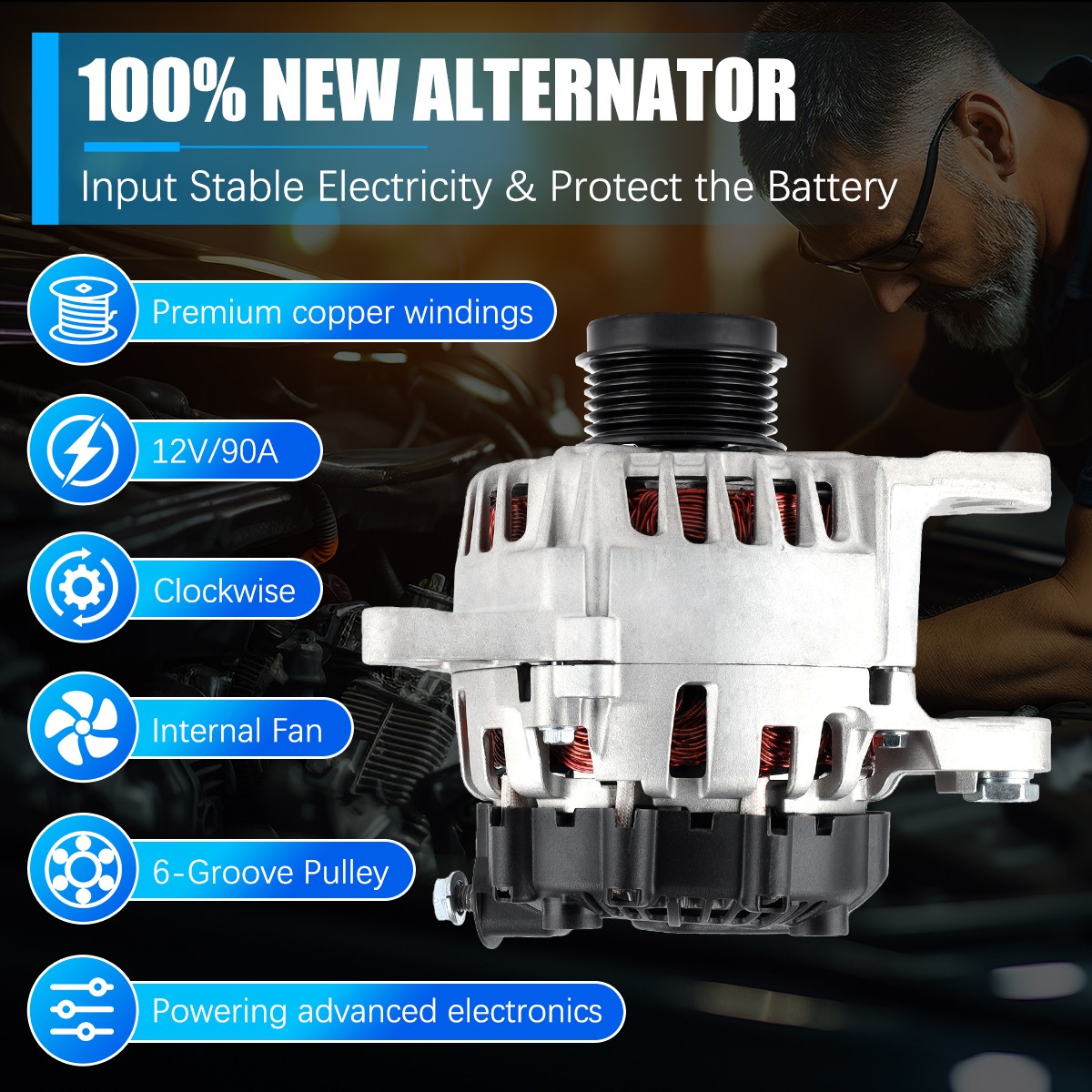 Product Description F eatures : Built to strict quality control standards 100% factory tested . Rugged and stable car alternator, matched against OE originals for performance. This alternators Key components are greased for noise, vibration, exposure and voltage stability to help with long term reliability and durability in harsh conditions . Longer life of the alternator through the use of premium brushes and other critical components that resist failure or poor performance . This automotive alternator provides high efficiency and reliability, ensuring stable power supply for your vehicle. It utilizes modern design and manufacturing technologies to deliver excellent performance and provide reliable power for various electrical equipment and charging systems. Specifications: Material:Aluminum Color:Silver Placement on Vehicle:Front Voltage:12V Rotation:CW Amperage :90 Pulley Groove Quantity :6 Regulator :IR Fan Type :IF Part Numbers : ARROWHEAD:AVA0172, 400-40154 HYUNDAI:37300-2E200 LESTER:11610 VALEO:2610428, FG10T011 VALEO NEW:600229 Fitment : HYUNDAI ELANTRA 2011-2016 1.8L HYUNDAI ELANTRA 2011 2.0L HYUNDAI ELANTRA 2014-2016 2.0L HYUNDAI ELANTRA COUPE 2013 1.8L HYUNDAI ELANTRA COUPE 2014 2.0L HYUNDAI ELANTRA GT 2013 1.8L HYUNDAI ELANTRA GT 2014-2017 2.0L KIA FORTE 2014-2016 1.8L KIA FORTE 2014-2016 2.0L KIA FORTE KOUP 2014-2016 2.0L KIA FORTE5 2014-2016 2.0L KIA SOUL 2012-2013 2.0L Package include: 1 x Alternator Attention : HOW TO REPLACE AN ALTERNATOR? 1. Disconnect the negative battery cable 2. Take off the intake hose, mass airflow sensor, and air filter. 3. Loosen the belt tensioner. 4. Remove the belt from the pulley. 5. Loosen and remove the alternator. 6. Remove dust and oil from the installation position. 7. Install the new alternator. 8. Replace the bolts, and reattach all connections. 9. Reinstall the belt. 10. Connect the intake hose and reinstall the mass airflow sensor 11. Reconnect the negative battery cable Note: When The Alternator Makes A Noise, You Need t o Operate : If the noise of the alternator is mainly concentrated in the speed change stage of the automobile alternator, check the alternator belt first, and adjust or replace it. If the noise mainly occurs in the front and rear parts of the automobile alternator, it may be that the bearing lubrication of the alternator has a problem. If the noise mainly appears in the middle of the automobile alternator and obvious vibration sense can be observed,there is friction between the stator and rotor of the automobile alternator.The alternator can be disassembled for adjustment or component replacement. Payment We accept PayPal only. If buyer want to delay the payment because of financial problem, please contact me by the ebay message within 3 days Payment via PayPal (PayPal accepts all major credits/debit cards and eCheque) ECheque payment will tak e 3-10 days to get clear, thus DELAYing the shipment. Shipping Handling time: 1 business day (Orders are not processed on weekends & holidays) Tracking information will be sent once item is shipped. Local pick-up is unavailable at the moment. For international shipping and shipping to Guam, Hawaii and Alaska, Please contact us before placing the order. Item is shipped to ebay address. Leaving correct address can minimize delay. Terms For any issues with Defects, Return, Item Exchange request, please contact us first and send us a message first before opening any type of case or request. We devote ourselves making EVERY CUSTOMER in 100% Satisfactory and resolve any problem. We highly value and appreciate your business. Thank you. No returns will be accepted without an RMA number. Please contact us for the RMA number. Return is acceptable within 30 days of delivery. Return for replacement or money back is optional. Returned items must be in the brand new, unaltered and resalable condition. Seller is not responsible for any labor cost, expense in a dealer store, or damage due to wrong installation. Returns Return is accepted within 14 days after the buyer's receiving the item. (Excluding contrived damagement or misusage).100% money-back Guaranteed! All product will be tested in 100% before delivery.If the item is defected by the processing of postage,Buyer has up to 14 days from date of receipt for exchange of a new one.All shipping charges for returned products are to be paid by the buyer,Please contact us for the return address Contact Us All messages will be answered within 24 office hours. Please contact us either by clicking "contact seller" in the "purchase history" section or simply click "ask a question" at the bottom of this page. If you are unsatisfied with our item or service, please contact us before leaving any feedback. We are committed to resolve all issues in a friendly and satisfactory manner. We always reply to messages within 2 business days (off-duty at weekend). If you do not get a response from us, then please check your junk or spam mailbox. powered by You may also like OEM Alternator 31100-R40-A01 For 2009-2014 ACURA TSX 2008-2012 HONDA ACCORD 2.4L 88.99 USD Free shipping OEM Alternator for Chrysler 200 2011-2014 Town and Country 2011-2016 3.6L #11570 83.99 USD Free shipping OEM Alternator 13882 for 2001-2005 BMW 320i 325Ci 325i 325xi 330Ci 330i 330xi X5 89.99 USD Free shipping OEM Alternator for Nissan Altima Sentra Rogue 2007-15 2.5L 23100JA02B 23100JA02C 89.99 USD Free shipping NEW Alternator for Toyota Yaris 2006 2007 2008-2014 1.5L 11203 11505 27060-21150 67.99 USD Free shipping Alternator For Chevrolet GMC Silverado Sierra 2014-2020 1500 5.3/6.2L 150A 14007 91.99 USD Free shipping OEM Alternator 110AMP For Nissan Sentra 1.8L 2013 2014 2015 2016 2017 2018 11673 91.99 USD Free shipping Alternator for Chrysler Sebring 2001 2002 2003 2004 2005 2006 2.4 2.7L 13868 OEM 92.99 USD Free shipping Alternator #11188 For KIA OPTIMA SPORTAGE HYUNDAI TUCSON SANTA 2005-2007 2.7L V6 67.99 USD Free shipping OEM Alternator 160Amp 11440N for 2009-2020 Dodge Journey 2.4L