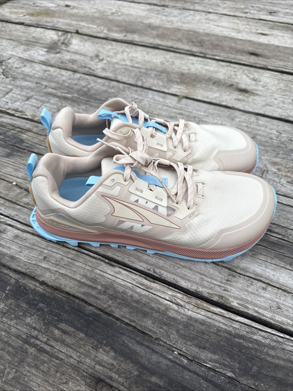 The Altra Lone Peak 7 Zero Drop sneakers in Men's size 10 and Women's size 11 are a stylish and comfortable choice for active individuals. Featuring a low-top design, lace-up closure, and solid beige color, these shoes are perfect for both activewear and casual wear. The rubber outsole provides traction, while the foam insole offers added comfort for running and jogging. Made with synthetic upper material and fabric lining, these sneakers are durable and versatile for various seasons, making them a great addition to any athletic wardrobe. These are a women’s shoe but I’m a male they fit the same. Basically brand new!
