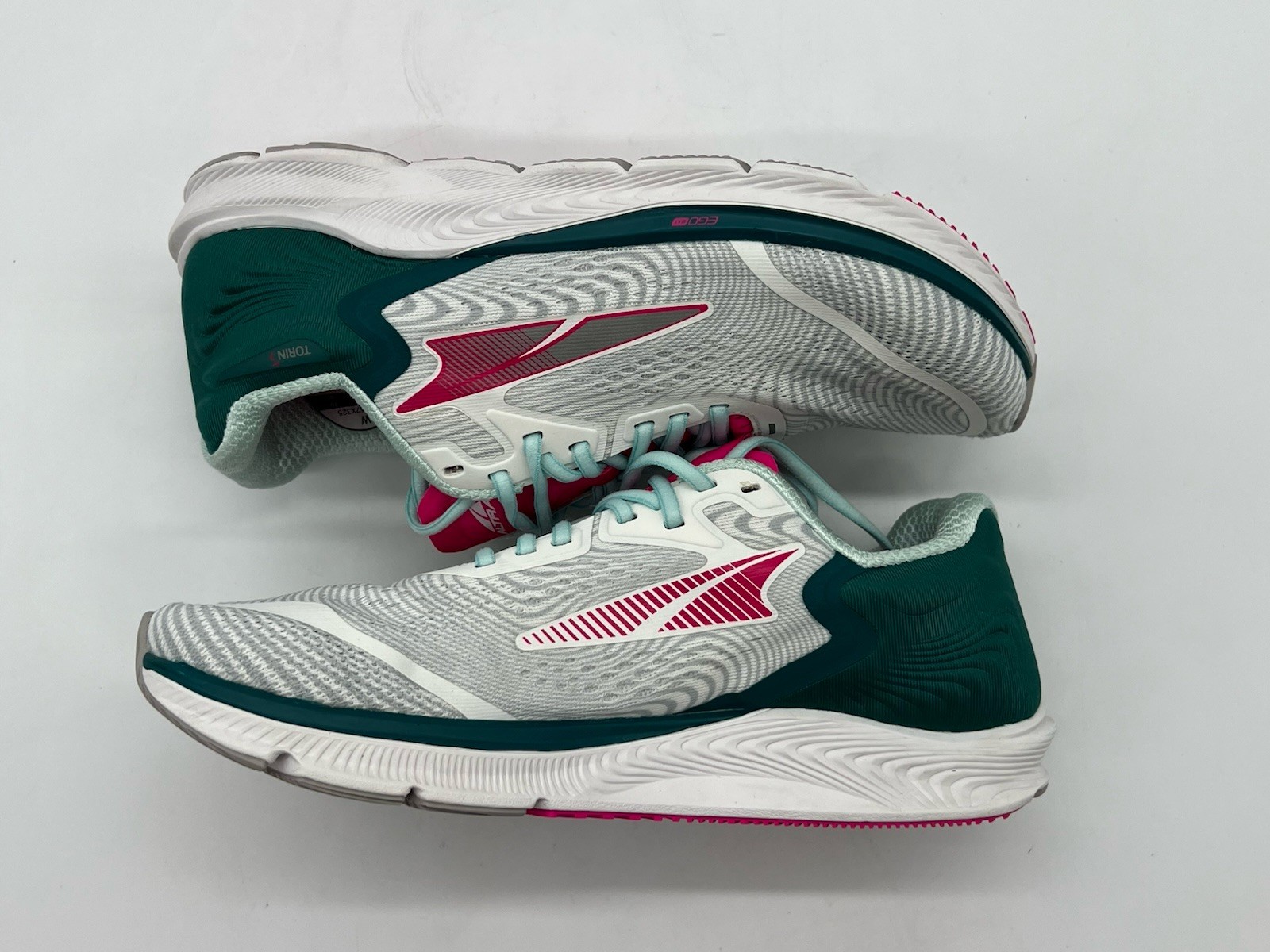Altra Torin 5 Womens Sz 8.5 Deep Teal Pink Athletic Walking Road Running Shoes. Shoes are in used condition and have signs of wear but shoes are still in great condition. Upper material is in great condition and very clean , inside is clean and the soles are in great condition. Nice comfortable shoes for casual wear. Condition is pre-owned. Shipped with ups or usps priority mail. Sold as pictures. Thank you! Feel free to message me for any questions. Thank you