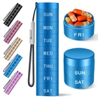 【Quality medical grade aluminum alloy 】Our metal pill case is made of high-quality medical grade aluminum alloy which is BPA free,light but sturdy. Safe for storing medicines.Unlike flimsy plastic pill boxes,our premium Aluminum Alloy Pill Organizer is tough enough to be dropped on a hard floor without worry of breaking open.Keeping your pills safe and secure any time and any where. 【Compact but Large Capacity】Our portable weekly medicine organizer is designed with compact size to make it easy to fit almost anywhere, but with enough room to hold many meds,vitamins you need for the whole week .Each compartment measures 1.57'' x 0.94'' x 1.18'', able to contain up to 8 fish oils or 15 capsules,provides you enough storage during your traveling and helps you keep medicine for the week organized. 【MOISTURE PROOF & WATER PROOF】There are seal rubber gaskets on each compartment to ensure it’s water tight and air tight, protect the pills from moisture, dust, and UV light keeps them dry ,fresh and effective. Not worry about destroying your meds when you are on vacation, trip, camping or any outdoor activity.No moisture or humidity damage like in the usual flimsy plastic pill holder . 【 Laser Engraving Technology】Instead of regular printing craft,our vitamin organizer uses Upgrade Laser Engraving Technology ,which is durable and hard enough to promise never weared off.The days are etched into the metal firmly and make letters on it clearly visible.You can use our pill container permanently. 【BEST FOR ON THE GO TRAVLE】Rotating locking design to help lock your medicine safely and easy to open and refill.After being locked, it will stay closed, won't pop-open or spill out accidently in your handbag, suitcase, backpack,purse when traveling.Stackable detachable supplement organizer allows you to take only the days you need.save much more room traveling makes you easily enjoy your journey .