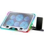 【6 High Speed Silent Fans】The laptop cooler has 6 noise-free fans, with blue LED light. Wave metal mesh, 1700-2400RPM 3 big fans 3 small fans, flip-up silicone holder, 9 adjustable height angles, adjustable speeds, Very quiet rapid cooling effect prevents your laptop from overheating. 【LCD Display Control】Four USB ports and a switch of the laptop cooler pad turns fans and lights on and off (The greater you turn, the faster the fans run and the brighter the blue LEDs get). A USB-to-USB cord (approx. 1.5ft) is provided to connect the laptop to the computer cooling pad for power. 【1 3.0HUB&2 2.0HUB】Four USB Ports One for Power, One for 3.0 HUB and Two for 2.0 HUB.3.0USB Transmission Speed Can Reach 5Gbps.2.0USB Transmission Speed Can Reach 480Mbps. 【10 RGB Lighting Modes】There are RGB light bars surrounding the sides of the laptop cooler, creating a cool game atmosphere and visual effects for you. 【RGB light memory function】The only product with RGB memory function at present. So that you do not need to retune the RGB lights each time. 【Ergonomic Design】This laptop fan cooling pad provide your notebook with optimal viewing experience. Adjustable from 10 to 45 degrees helps to relieve neck pain caused by prolonged computer use and incorrect posture. The notebook cooler has built-in platform ventilation to deeply cool your devices. 【Desk and Lap Use】The laptop cooler pad has a oversized base which can increase the force-bearing area, even if to put your laptops on legs with the laptop cooler pad. You can use it anywhere like lap, sofa, bed, desk. 【Wide Compatibility】The gaming laptop cooler is compatible with 10 11 12 13 14 15 15.6 16 17 17.3 inch laptops. The two USB ports are reinforced and matched with the braided wire USB cable, which will not loose or fall off easily. The panel of the rgb laptop cooler is equipped with 2 non-slip baffles, which is suitable for large and heavy laptop.