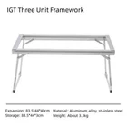 Specification Product Name: IGT Three Unit Framework Product size: 83.5*44*40cm Storage size: 83.5*44*3cm Product material: Aluminum alloy,stainless steel Bearing weight: About 30kg Product weight: about 3.3kg egg roll panel size:76.5*36 egg roll panel weight:1.5kg/2.9kg IGT bag Size: 93.5x6x44.5cm IGT Bag 1: the bag is without partition IGT Bag 2: the bag is with partition Feature 1. A variety of combinations can be used as desired, can be matched with the corresponding specifications of the stove, the splicing is tight and not easy to slip, outdoor barbecue cooking need not worry, is a good helper of camping. 2. Table frame long side guide rail design, can install the gas tank and some tableware or kitchen utensils, etc. 3. The whole table made of aluminum alloy, high strength, light weight, strong bearing capacity, can bear about 30kg. 4. Table plate can be detachable table feet can be folded, after storage does not occupy space, easy to carry. Note Due to manual measurement, there is a tolerance in the product size.