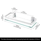 SPECIFICATIONS -Materials: Aluminum & Tempered Glass -Finish: Silver -Installation: Wall-Mounted -Glass: 8mm-Thick Tempered Glass, Clear -Dimensions: Product Dimensions: 13.78 x 4.72 x 2.4 inches ( L x W x H ) PACKAGE INCLUDES 1 x Tempered Glass 1 x Railing Bar (including 2 set screws) 2 x Vertical Bar 2 x Bracket 1 x Hardware Pack 1 x Instructions Upgraded Brackets - More Stable: Upgraded brackets have greater stability to fit the shelf snugly against the wall, even when holding heavy items. Max. load: 5kg/11lbs. Also, the all-metal frame crafted without any plastic ensures maximum sturdiness. Prevent Rust: Made of aluminum frame and 304 stainless steel screws, our glass shelf is rust-resistance and ideal for humid environments like kitchens and bathrooms. Fits flat and smooth wall surfaces. Extra-Thick (8mm) Tempered Glass (Clear): Safe use. When broken, it crumbles into small granular chunks instead of splintering into jagged shards as plate glass does, less likely to cause injury. Space Saving: Shelf depth 4.72-inch, compact size, and huge storage space. Widely used in the kitchen, lavatory, living room, balcony, etc. You can find a precise dimension from product pictures. Overall dimensions: 13.78 x 4.72 x 1.65 inches (LxWxH). Max. Load 5 kg/11 lbs, NON-plastics, metal frame, solid construction, sturdy design. Screws are made from SUS 304 stainless steel and won't rust. It can be screw mounted to flat and smooth wall surfaces, like tiles, marble stone, metal, etc. (Note: Non-solid walls are not suitable for it.) All Hardware And Instructions Included: 1 x Glass Bathroom Shelf, 1 x Hardware Pack, Installation Instructions. Set screws (for glass shelf), wall-mount screws and instructions are all included, no need to purchase extra hardware.