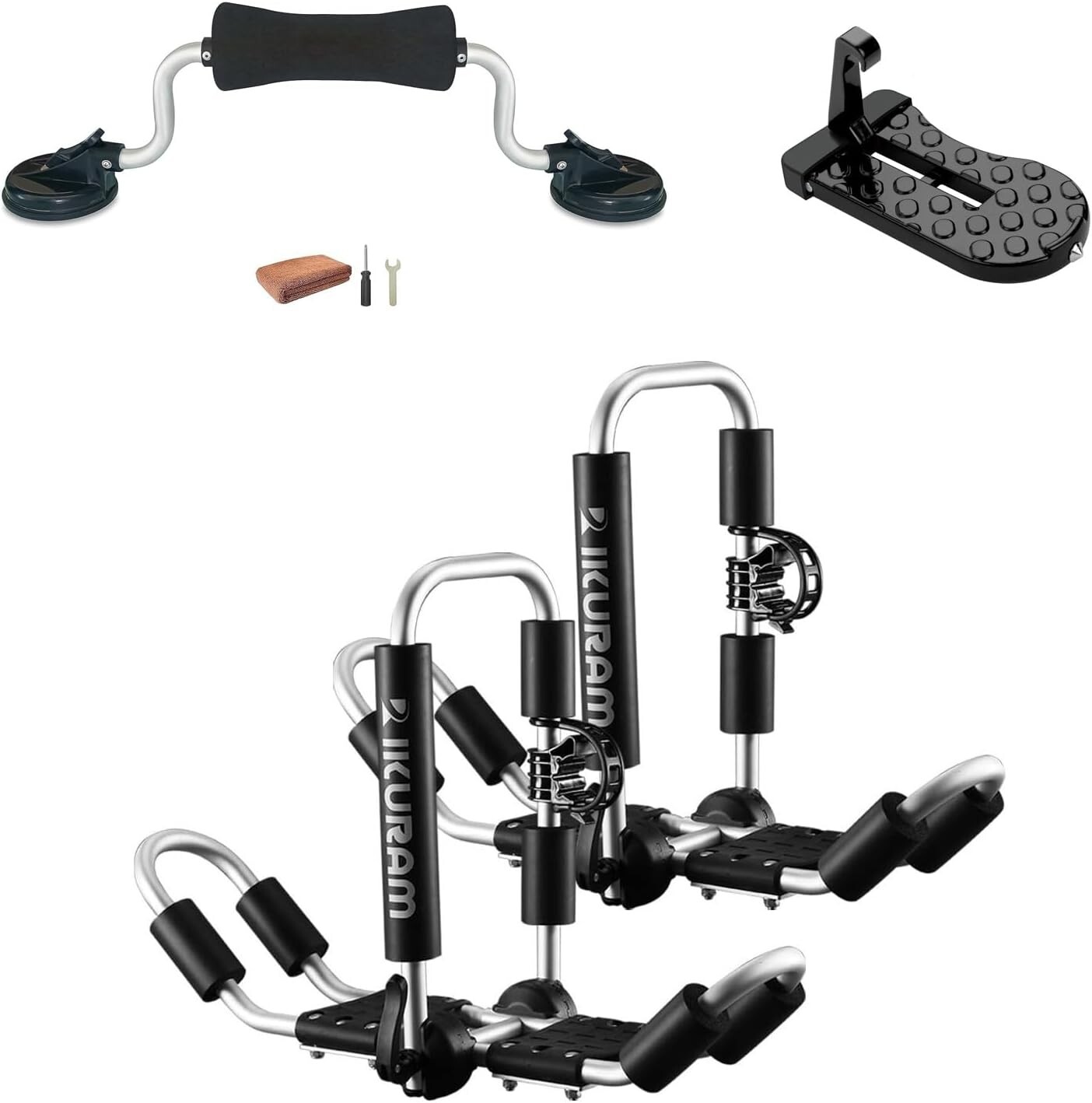 Kayak Roof Rack Aluminum Folding J-Style Carrier for Canoe SUP Surfboard ‹ › ‹ › ‹ › ‹ › ‹ › ‹ › ‹ › ‹ › ‹ › ‹ › Kayak Roof Rack Aluminum Folding J-Style Carrier Perfect for Canoe, SUP, and Surfboard Transport Key Features: Maximum Kayak Protection: Oversized, thick, all-weather rubber saddles paired with padded uprights ensure your kayak and stand-up paddle boards are protected from rubbing and damaging. Universal and Easy Mounting: This J-Cradle fits square and most oval-shaped factory-installed cross rails swiftly. Includes everything you need for vertical kayak transport, with four heavy-duty straps capable of supporting 750 lbs. Durable Construction: Made from high-quality anodized Aviation Grade Aluminum Alloys, this rack is lightweight, rust-resistant, waterproof, and designed for long-term outdoor use. Quick Raise and Fold Design: The convenient front release handle allows for quick folding when not in use, increasing overhead clearance. Easily lock the J-bars at different angles to accommodate various kayak shapes. Multiple Carrying Configurations: Designed to hold up to two kayaks or standup paddle boards, the versatile positioning and oversized padding transform from a J-cradle to diverse setups, maximizing your roof space. Native Paddle Holders are included for ideal paddle positioning. Benefits: Superior protection with advanced padding to prevent damage during transport. Effortless mounting and demounting, perfect for all vehicle sizes. Sturdy construction allows for repeated yearly use—saving you money and reducing waste. Quickly adapt to different kayak shapes and sizes with adjustable positioning. Enjoy a streamlined transport experience with paddle holders and multiple carrying options. Why choose our Kayak Roof Rack? Elevate your kayaking adventures with the ultimate safety and convenience of our Kayak Roof Rack. Engineered for maximum protection, made from materials, and designed for adaptability, this aluminum J-Style Carrier enhances both your transport efficiency and peace of mind. With easy mounting and multiple carrying possibilities, it's a fantastic investment for any outdoor enthusiast looking to make memorable adventures. Don't compromise on safety or quality—secure your Kayak Roof Rack today and hit the water with confidence! Shipping Free & Fast Shipping - We offer free shipping to most of the USA with a normal delivery time of 3-7 days. However, due to the current situation, additional delivery time (up to 3 weeks) may be required for some items. Alternative Carriers - We may use alternative carriers (e.g. USPS, FedEx, UPS, etc.) to ensure your package arrives safely and on time. Due to the use of multiple carriers, we are unable to provide a tracking number automatically. Handling Time - Orders are processed and shipped within 1-2 business days of receiving cleared payment. Shipping Restrictions - Shipping to Alaska, Hawaii, Puerto Rico, Guam, and other US territories may incur shipping charges or delivery restrictions. Please contact us before ordering, or your order can be refunded/cancelled. State Restrictions - There may be restrictions based on your state of purchase. For example, certain items may not be shipped to California due to state regulations. Contact for Tracking Updates - If you require tracking updates or have any concerns about the delivery of your order, please feel free to contact us, and we will be happy to assist you. Return 30-Day Hassle-Free Returns - We want you to be completely satisfied with your purchase. If you are not, you can return the item within 30 days of receiving it for a full refund or exchange. Easy Return Process - To start a return, simply contact us and we will provide you with a prepaid return shipping label and detailed instructions. Restocking Fee - There are no restocking fees for returns. However, the buyer is responsible for return shipping costs if the return is not due to a seller's error. Refund Processing Time - Refunds will be processed within 5 business days of receiving the returned item in its condition. Payment We accept all major credit cards, PayPal, and Apple Pay for your convenience. Your payment information is secure and encrypted to ensure a safe and seamless transaction. Please complete your payment within 3 days of purchase to avoid any delays in shipping. Feedback Your feedback is extremely important to us. We strive to provide the best products and customer service possible. If you are satisfied with your purchase, please take a moment to leave us a positive review. If you have any concerns or issues with your order, please contact us before leaving negative feedback. We are committed to resolving any problems and ensuring your satisfaction. Contact Us If you have any questions or concerns, please feel free to out to our customer support team. You can contact us through the eBay messaging system. We are available Monday to Friday, 9:00 am to 5:00 pm EST, and we will do our best to respond to your inquiry within 24 hours. Buy it now and enjoy a pleasant shopping experience! Type: Car/Truck Rack