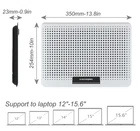 Laptop Cooling Cooler Pad: laptop Cooling Pad with the mesh design and One Big Fan (160mm) spinning at adjustable speed from 1000-1400 RPM, greatly dissipate the heat from the laptop, enable it in good working condition, and prolong the lifespan of your laptop. Durable Laptop Cooler Pad: The surface of cooling pad is made of aluminum alloy which can draw heat away from laptop, improve heat dissipation, and provides your laptop a wear-resisting and firm carrying surface. Slim and lightweight notebook cooler stand (About 1.35 lb) , allowing you to store it in your laptop bag and take it with you whenever you go. Laptop Cooling Stand with 7 Height Adjustable: Seven adjustable height settings to put the stand up or flat and hold your laptop in a suitable position; Two baffle on the pad prevents your laptop from sliding down or falling off; It's not just a Laptop Cooling Pad, but also a perfect LAPTOP STAND. Two USB Ports: Laptop cooling stand just plug in the USB port of your laptop to use. Equipped two USB 2.0 ports for data transmission or connecting other devices, package include one USB cable for you. Ultra Quiet Cooler Fan for Laptop: The noise reduction design of this laptop cooler makes it not disturb you even at maximum power, allowing you to concentrate on watching videos or work, enable a comfortable working environment.