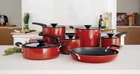 We’ve thought of just about everything to make your cooking, cleaning, and organizing experience better in the kitchen. The Tramontina nesting 11 pc cookware set will revolutionize your cooking and your storage space. The pieces in this dependable set lock together, and nest within each other—leaving you with 50% more cupboard space! Made of heavy-gauge aluminum, the high-performing set features a porcelain enamel exterior finish. You can feel comfortable preparing family dishes with our nesting cookware set. We’ve paired the porcelain enamel exterior with a nonstick interior, making it strong enough to handle your busy kitchen and your heartiest recipes—all with the low-maintenance durability you count on from Tramontina. Keep an eye on your sauces and soup through heat- and shatter-resistant tempered glass lids and say goodbye to trails of sauce across your countertops. These lids also feature a unique (and convenient) knob that serves as a spoon rest! We didn’t stop there. Ergonomically designed, riveted handles also help save storage space, as well as, the life of the set, by locking together and spacing the vessels apart, to protect the nonstick surface from getting scratched when tucked away in your cupboards. And when it’s all about the cleaning, this set makes that a breeze as well. It’s easy to clean and dishwasher-safe! Available in a variety of colors.