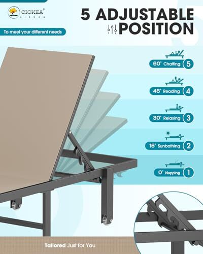 Return Policy Fast Delivery Trusted seller Aluminum Chaise Lounge Chair Outdoor with Wheels, Patio Lounge Chair with Adjustable 5-Position Recliner and Full Flat Tanning Chair for Patio, Beach, Pool, Khaki Product Description Premium Fabric: Our lounge chair is crafted with premium textilene fabric that boasts superior durability. It also provides excellent comfort and support, ing a nice lounging experience Convenient Installation: The chaise lounge chair is constructed with a lightweight, aluminum frame, allowing for easy movement. Installation takes only 10 minutes Enhanced Mobility: With the added convenience of wheels at the base, moving your lounge chair around your patio or garden has never been easier. This upgrade allows effortless repositioning so you can always find just the right spot in the sun or shade Easy Maintenance: The textilene fabric is easy to clean, requiring only a simple wipe-down with a damp cloth. The aluminum frame is low maintenance and doesn't require frequent upkeep and giving you more time to relax and enjoy 5-Position Adjustment: Conforming to ergonomic principles, our outdoor sun lounger features five adjustable reclining positions, ensuring the perfect lounging angle for every user. It can even lay completely flat, making it an ideal choice for tanning All-Season Comfort: The lounge chair allows you to comfortably enjoy your outdoor time in any weather, redefining your outdoor relaxation experience! Shipping Returns Payment Shipping Shipping is FREE to all addresses other than APO/PO boxes in the lower 48 states. All our stock ships from US-based warehouses. Shipped via USPS or UPS (depending on location and package weight) Unless stated otherwise, all orders will ship within 24-72 hours of your payment being processed. Check our feedback to see the great reviews of FAST shipping we offer. Returns Seller does not accept returns Payment We currently accept payment via eBay managed payments only. Once payment is cleared, we will dispatch your shipment within 1-3 business days. Please refer to the "Shipping" tab for more information regarding shipping speed to your destination.