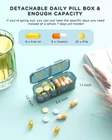 7 Day Am Pm Pill Organizer -Your Health Steward! Taking medication may seem like a simple daily task, but remembering to take different medications every day can be tricky and overwhelming. Relying on pill organizers is an effective way to manage your medication intake and make sure you’re right on schedule. So our am pm pill box provides you with such an easy and effective way to keep track and maintain your medication regimen! Why do we need to use the weekly pill container? - Keep your supplements and medications organized. - Save your time, you don’t need to open all of your pill bottles. - Help you remember to take pills every day. - Easy to carry it wherever you go. Warning: As with all medication storage devices, please keep the pill keeper away from children and pets 7-Day Pill Organizer 2 Times A Day Feature: ✔BPA-Free Material - This pill dispenser two times a day is made of eco-friendly food-grade material, safe for medical use. ✔Double protection - Double sealing protections keep the pill planner twice a day always dry and securely closed. ✔Store 7 Days' Am Pm Meds - Save your time by filling a week's pills ahead of time, rather than manually sorting them every day. ✔Large Capacity - The am pm pill case weekly with large compartments fit different sizes of pills, fish oils, vitamins, and so on. ✔Easy to carry - The internal pill holder is small enough to fit in your pocket or purse, perfect for on-the-go or travel carry-on! Specifications: Weight: 230 g/0.51 lb Item Dimensions: 9.1*4*1.2inch(Large) 3.2*1.2*1.1inch(Small) Material: BPA-free food grade plastic + Silicone Package Included:1 x Weekly pill organizer Note: The buckle of the am pm pill organizer opens from the top to down. Store 7 Days' Meds ( Twice A Day ) & Easy to Track: This luxury pill organizer 2 times a day sorts and fills a week's medications in advance at once, helping you from the daily repetitive action of manually organizing your pills and saving time. The clear colored week icons and am/pm letters on the small pill box lid remind you to take the right dose each day, easily tracking and maintaining your daily am/pm medication regimen. pill organizer - your smart medication assistant Detachable Daily Pill Container & Ideal Pill Organizer For Travel: This premium 7 day am pm pill box contains 7 separate detachable pill dispensers conveniently labeled for storing your daily (am/pm) medications. If you're going out of town for a few days or traveling, you can just take the specific days you need instead of a whole 7 days pill keeper, greatly reducing the burden of luggage. It is a great option for anyone who wants to stay organized and on track with daily medication schedule Double Protection & BPA-Free Materials: This 7 day am pm pill organizer features a secure clasp on both the outer case and inner holder, ensuring double protection for your medicine. Pets or children won't accidentally open it. The easy-to-use pill organizer button opens and closes tightly. Moisture-proof silicone rings keep pills dry and clean. Made from BPA-free material, this durable pill organizer is built to last. Note: the pill storage buckle opens from top to bottom Large Capacity & Elegant Aesthetics: This weekly pill box twice a day has enough space to fill and organize all your pills for an entire week, and each slot can hold up to 8 fish oils or 9 large vitamins for daily uses. What’s more, our medicine organizer has an elegant, luxurious, and gorgeous appearance, bringing you the ultimate visual aesthetics. This pill organizer would be suitable for any elderly relative or friend who takes medications or vitamins Am Pm Pill Organizer: Are you tired of using traditional pill organizers to manage your medication? Or are you worried about forgetting to take your pills when you're away from home? The 7 day pill organizer 2 times a day is designed for your convenience! You just fill it once a week and you'll have a reliable tool to help you stay track of your medication schedule, convenient and efficient