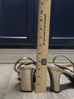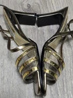 Amanda "Rachel" Women's Gold Slingback Strappy Open Toe High Heels Size 8.5 M Please review all photos carefully as they are part of the description. All measurements for this item can be viewed in the photos. Any flaws can also be seen there. Zoom in and take a closer look at this product.