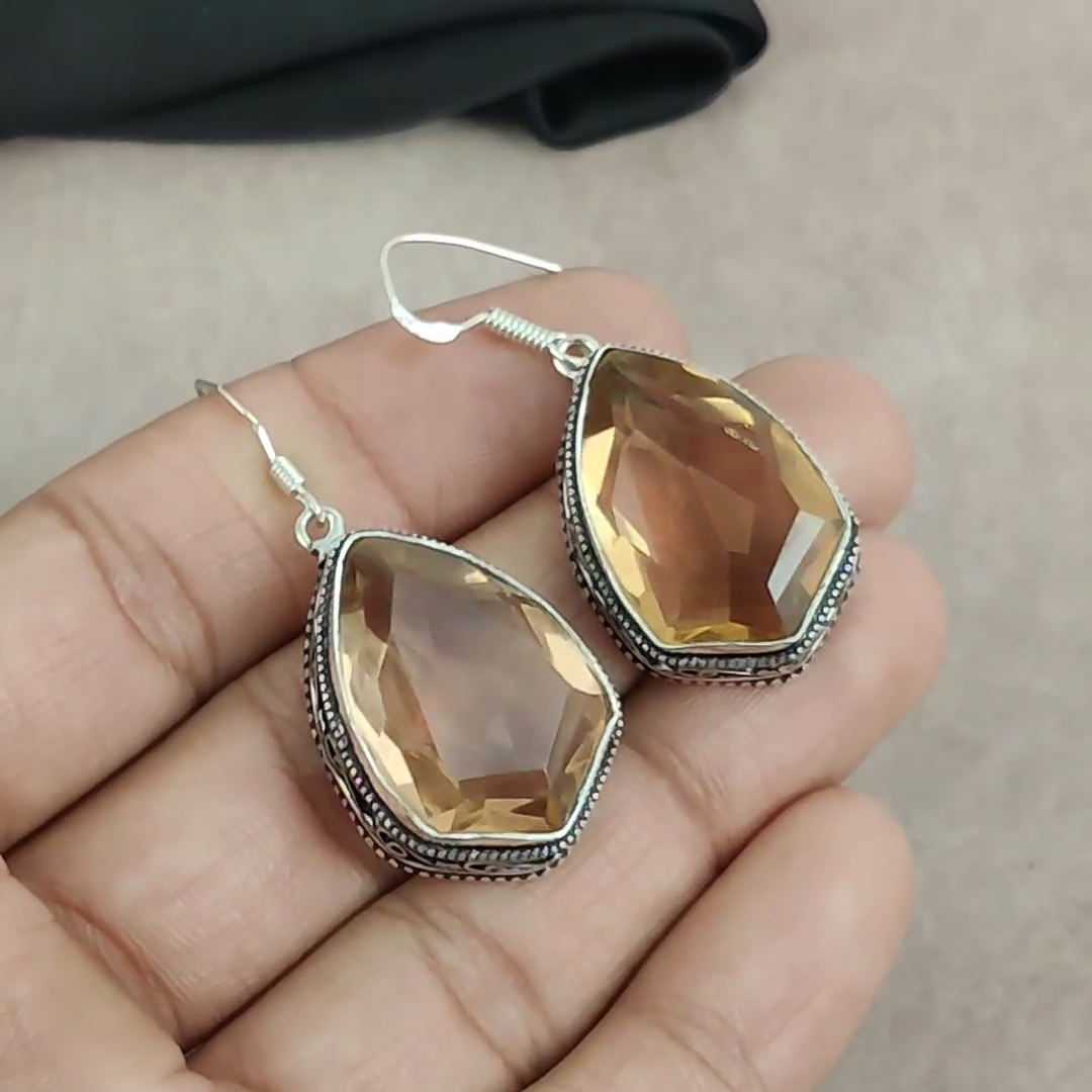 Amazing Citrine Gemstone 925 Sterling Silver Handmade Earrings for Gift