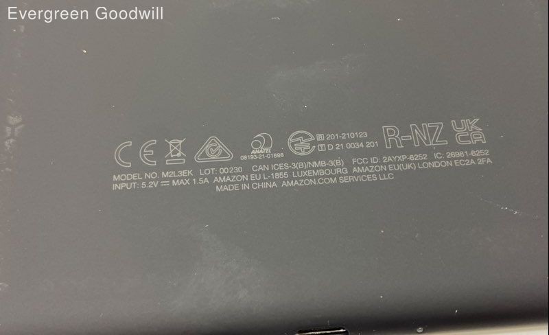 Amazon M2L3EK Brand: Amazon Model: M2L3EK Functionality: Item powers on - no further testing Condition: Donated item is in used condition. Device is power on tested and factory reset. Comes with cord but not power adapter. Not fully tested so selling as parts or repair. Evergreen Goodwill helps people get jobs across Northwest Washington by offering high-quality free job training, education and job placement. We empower individuals to overcome barriers to working by providing comprehensive support and connecting them with life-changing job opportunities, ensuring they are career-ready and can support themselves and their families. ***Disclaimer*** All items were donated to Evergreen Goodwill of Northwest Washington with no history or provenance. The auction is for all items pictured. Items may need servicing and/or benefit from a cleaning upon arrival. Please see photos for additional details and feel free to ask questions. PAYMENTS Please note that eBay will automatically cancel your entire order if the oldest item exceeds 4 days without payment. Once an order is canceled, we are unable to re-invoice, and the item will be relisted. To request a combined shipping invoice, please send one request within 2 days of winning your first item to avoid cancellation of your order. After a combined invoice has been sent, we are unable to add additional items to it. SHIPPING Local pickup is not available at this time. International shipping is not available at this time. We offer combined shipping as long as items will ship safely together. Auctions must end within 2 days of each other to be eligible for combined shipping. Please hold off on payment until all auctions have ended then proceed to checkout. Please do not pay for any items individually if you wish to have them combined - they must be paid at the same time. Items listed for flat-rate shipping are not eligible for combined shipping. PO Box addresses will require USPS shipments as FedEx Ground will not deliver. If FedEx is selected we may need to invoice for additional shipping costs.