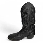 Color: Black Toe Shape: Almond Toe Closure: Pull On Shoe Width: EE Pattern: Western Upper Material: Leather Features: Comfort Brand: Amazonas Accents: Embroidered Department: Men Style: Western Type: Boot US Shoe Size: 9 Theme: Biker, Cowboy, Western, Work