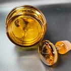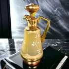 HomeAmber Glass Cruet w Stopper and Handle Czech Glass Hand Painted Pitcher 7” #51