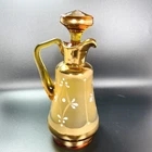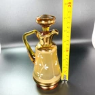 Amber Glass Cruet w Stopper and Handle Czech Glass Hand Painted Pitcher 7” #51