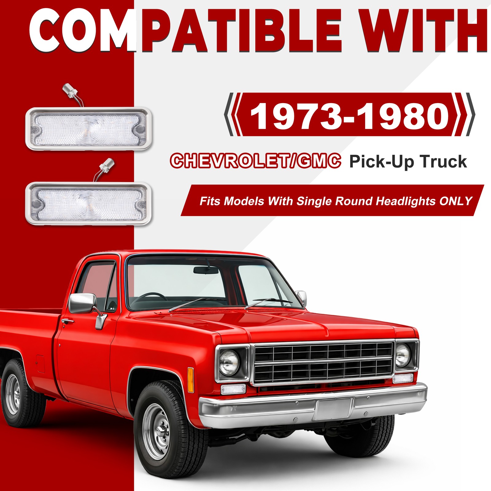 Headlight Assemblies Tail Light Assemblies Fog Light Assemblies Turn Signal Light Assemblies Side Marker Light Assemblies Park & Combination Light Assem Light Bulbs & LEDs Other Type Light Other Product Display Product Description Amber LED Parking Light Lamp Clear Lens Stainless Trim For Chevy GMC Truck 73-80 FIT FOR: For Chevrolet/GMC Pickup Truck 1973-1980 Fits Models With Single Round Headlights ONLY Product Specifics: Type: Parking Light Lighting Technology: LED Lens Color: Clear Lens Light Color: Amber Material: Plastic+Stainless Steel Placement on Vehicle: Front,Left,Right Installation Method: Screw-On Features: Built to Last: Exceptionally durable with outstanding corrosion, abrasion, and shock resistance. Easy Tool-Free Install: True plug-and-play fit, no modifications. Brilliant Clarity: Advanced optical engineering for a focused beam that maximizes visibility and safety. Package Includes: 2 X Parking Light (Left & Right Side) Shipping: All items will be shipped out in 1 business day, no expedited service available. We ship our items to USA only(Does NOT include Hawaii, Alaska or Puerto Rico, PO Boxes/APO's). Shipping Notes: We use multiple warehouses and will select the nearest warehouse for delivery according to your order address and our inventory, Thank you for your cooperation. Contact us: Any Questions, Just feel free to contact us on eBay. We will reply you in 24 hours. Brand Story Autolighting—Guiding with Light, Protecting with Craftsmanship. In an era where machinery and technology intertwine, reliability and innovation are the cornerstones of progress. Autolighting was born from a pursuit of unparalleled quality—we are not just a manufacturer of car lights, but also a guardian of safety and convenience. We pay attention to every detail of daily driving. With professionalism and craftsmanship, Autolighting provides solid protection for every journey. On Mar 30, 2026 at 00:37:11 PDT, seller added the following information: On Mar 31, 2026 at 07:45:01 PDT, seller added the following information: